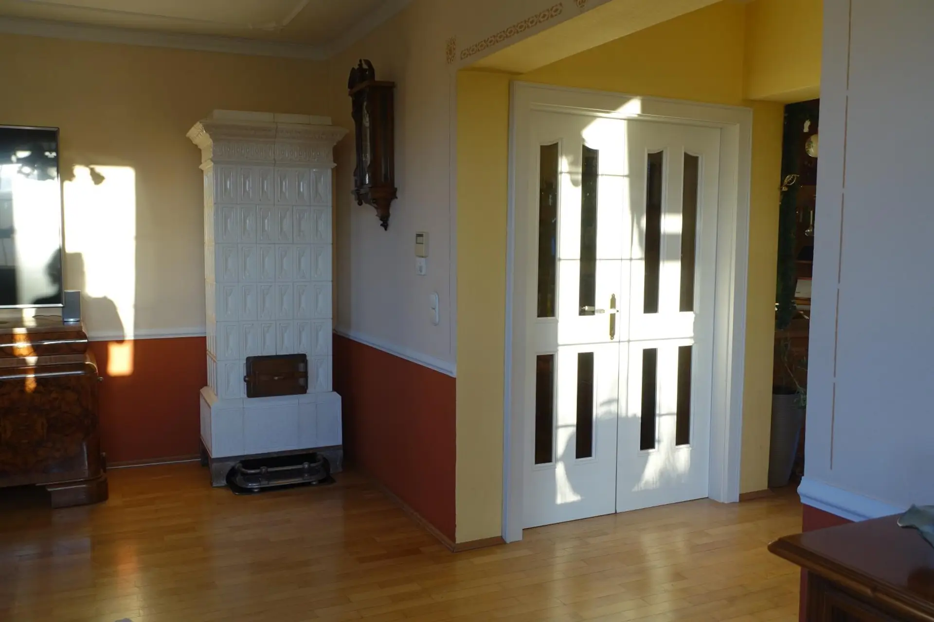Der Vollkeller beherbergt eine Holzvergaser-Zentralheizung sowie eine Luftwärmepumpe, die für behagliche Wärme an kalten Tagen sorgen.