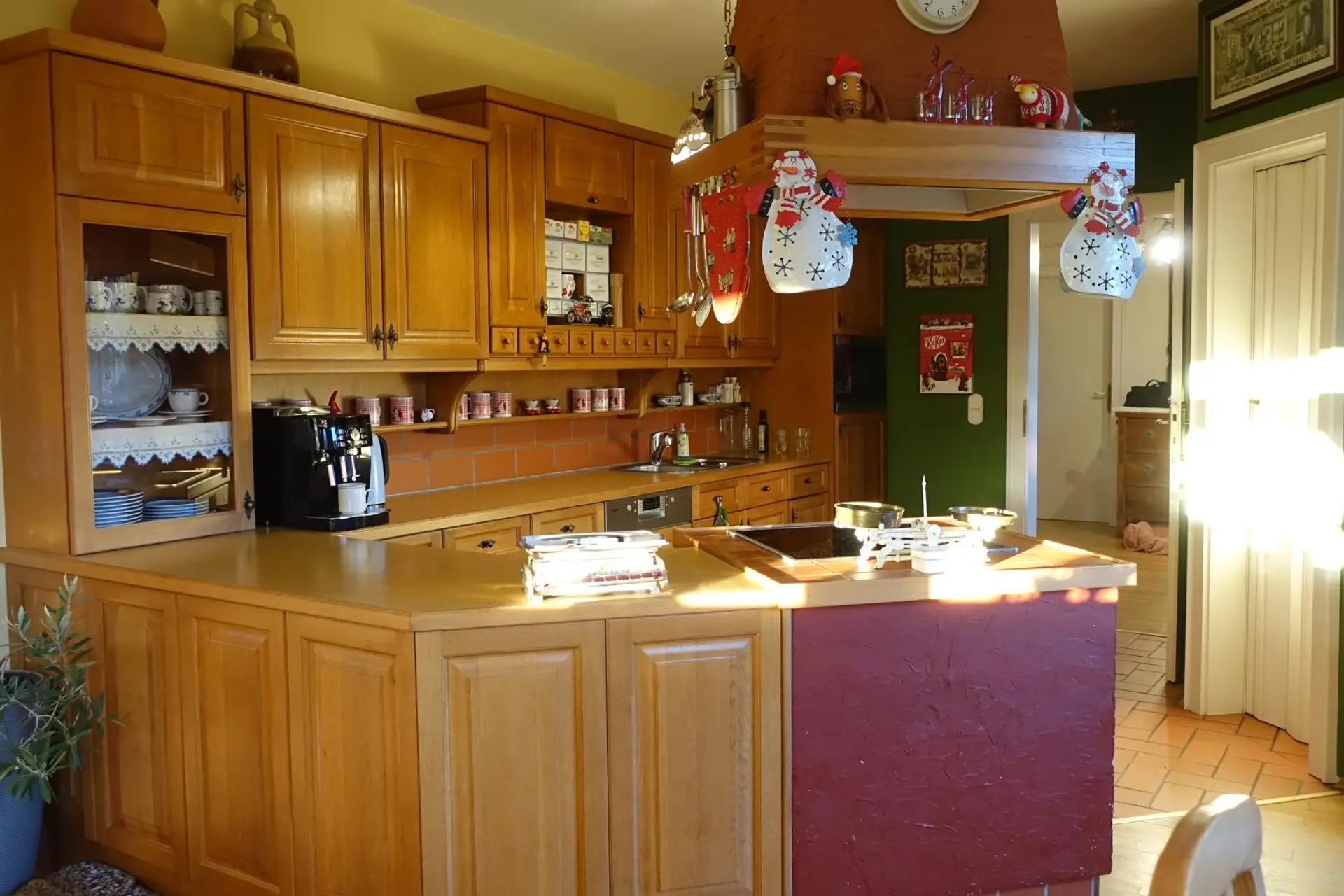 Die massive, vom Tischler maßgefertigte Eichenholz-Küche bildet das Herzstück des Hauses.