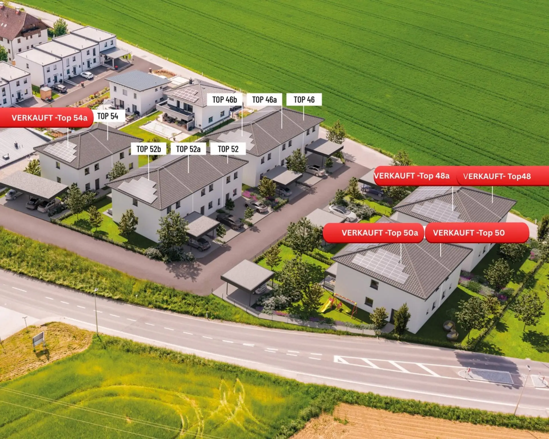 + 2 Autoabstellplätze je Haus, direkt vor dem Haus als Freiparkplatz