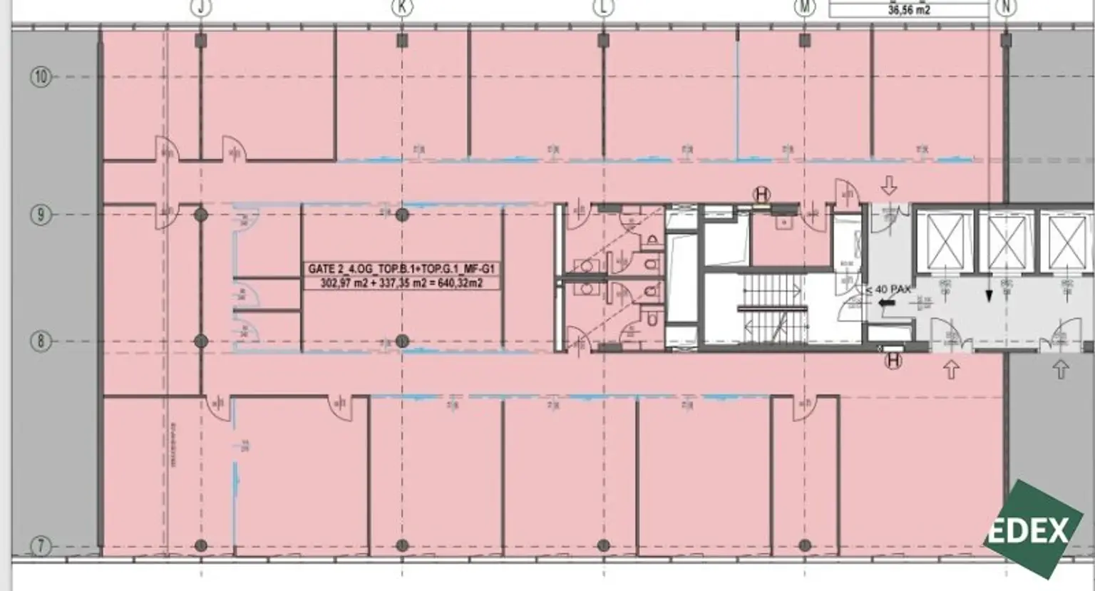 Das RIVERGATE bietet moderne Büroflächen mit außergewöhnlich hoher Flexibilität in der Flächengestaltung. Pro Ebene stehen rund 2.500 m² zur Verfügung, die je nach Bedarf in mehrere unabhängige Einheiten gegliedert werden können. Bereits kleinere Flächen ab etwa 290 m² lassen sich realisieren. Bei Bedarf können zudem mehrere Geschosse über interne Stiegen verbunden werden, um zusammenhängende Unternehmensbereiche über mehrere Ebenen hinweg zu schaffen.
