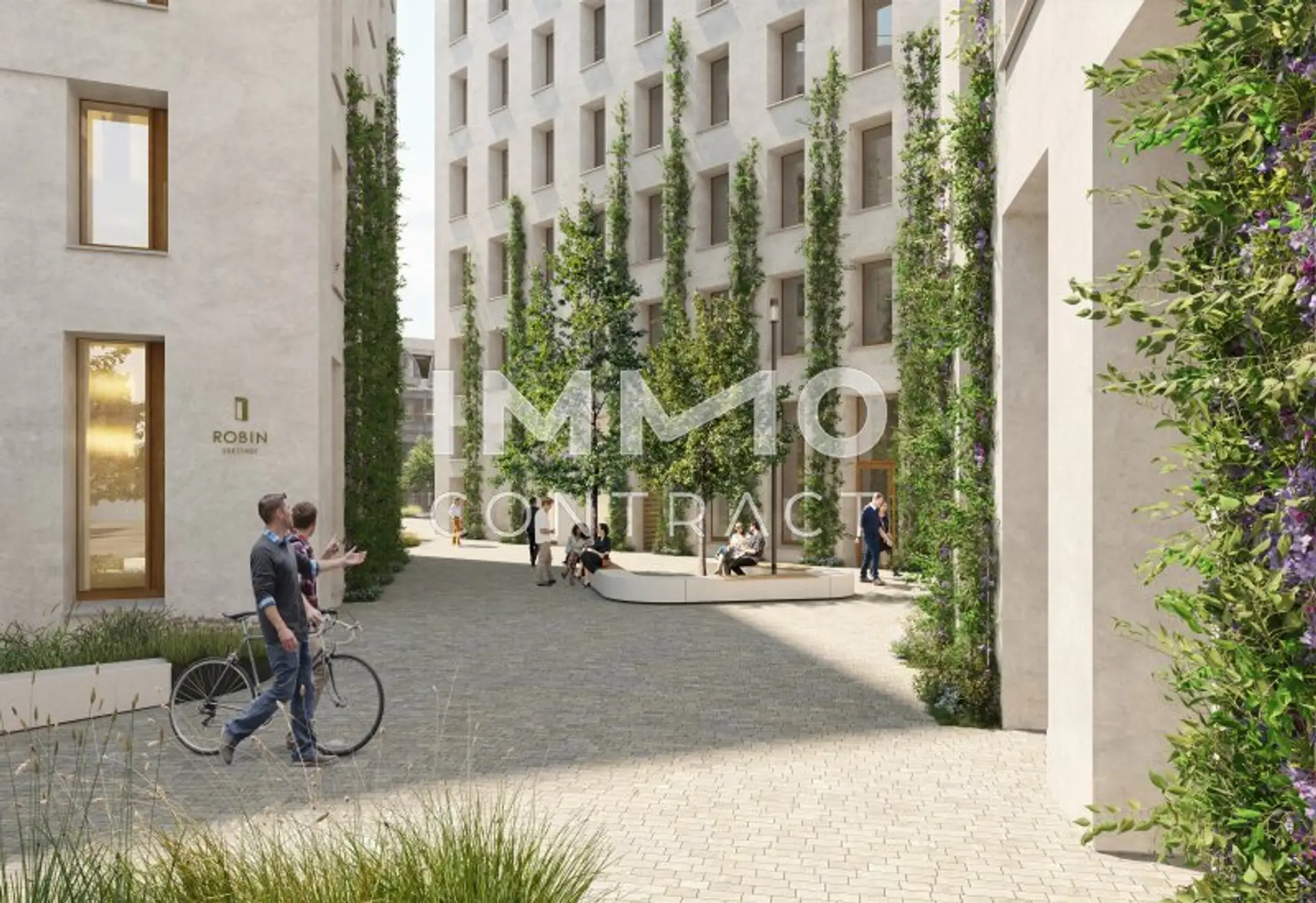 Die drei ROBIN Gebäude sind durch einen begrünten Innenhof verbunden. Freiflächen und großzügige Dachterrassen laden zu Begegnungen und Energietanken an der frischen Luft ein.