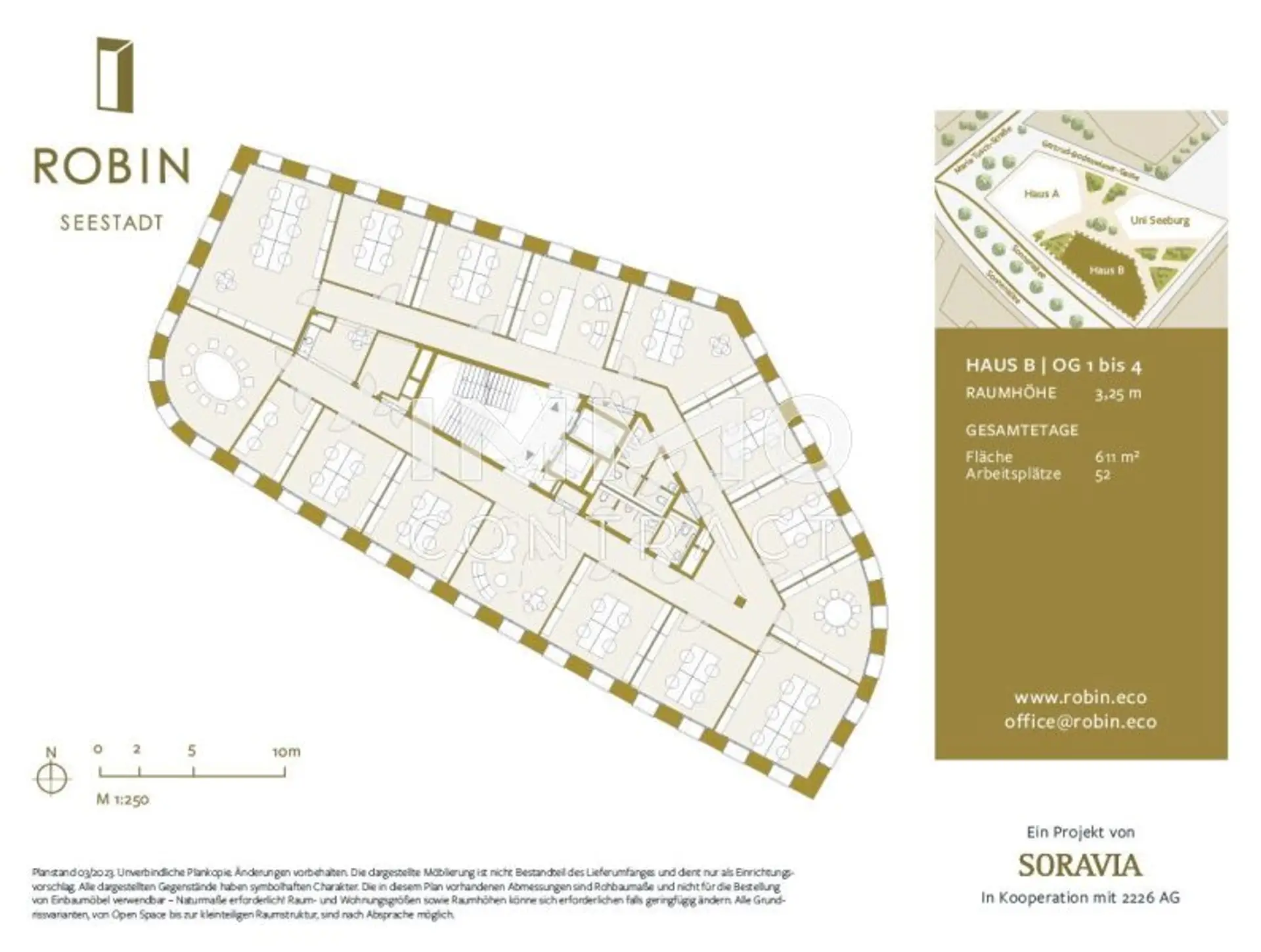 Direkt in der Fußgängerzone am Eva-Maria-Mazzucco-Platz liegt ROBIN Seestadt mit der Adresse Sonnenalle 28-30 in unmittelbarer Seenähe und bieten mit den drei Gebäude beste Voraussetzungen für Workspaces zum Wohlfühlen.
