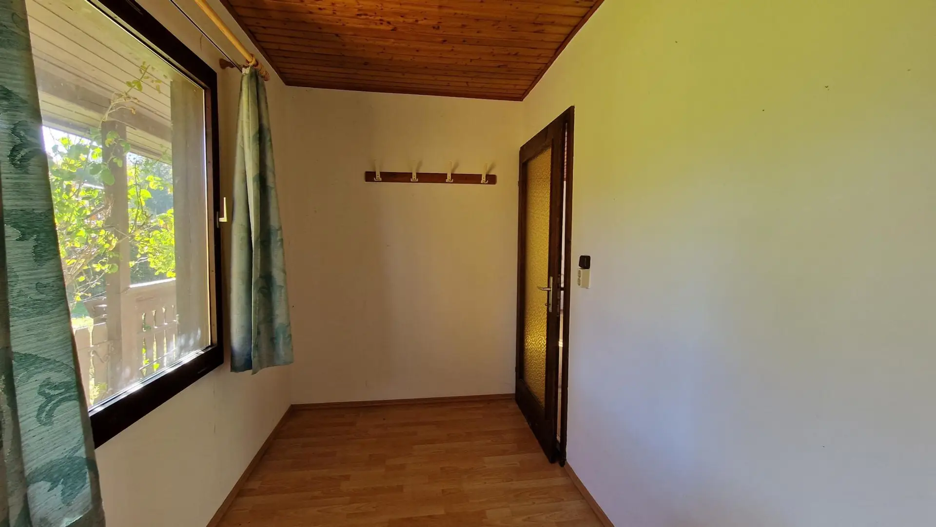 Das Ferienhaus ist an das öffentliche Wasser- und Kanalnetz angeschlossen und verfügt zusätzlich über einen eigenen Brunnen. Die Raumaufteilung umfasst ein Wohn-Esszimmer, eine separate Küche, ein Badezimmer mit WC sowie zwei weitere kleine Zimmer, die sich ideal als Schlafzimmer oder Arbeitsräume nutzen lassen. Die Beheizung erfolgt mittels eines Einzelholzofens im Wohnzimmer.