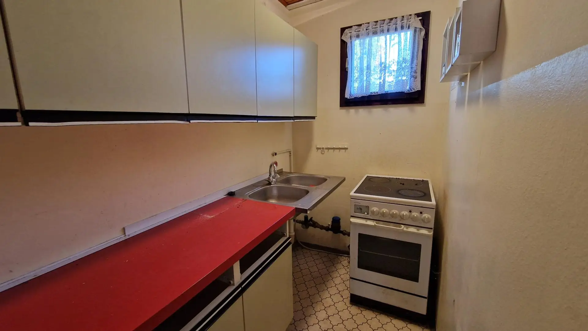 - Raumaufteilung: Wohn-Esszimmer, Küche, Bad/WC, 2 Zimmer