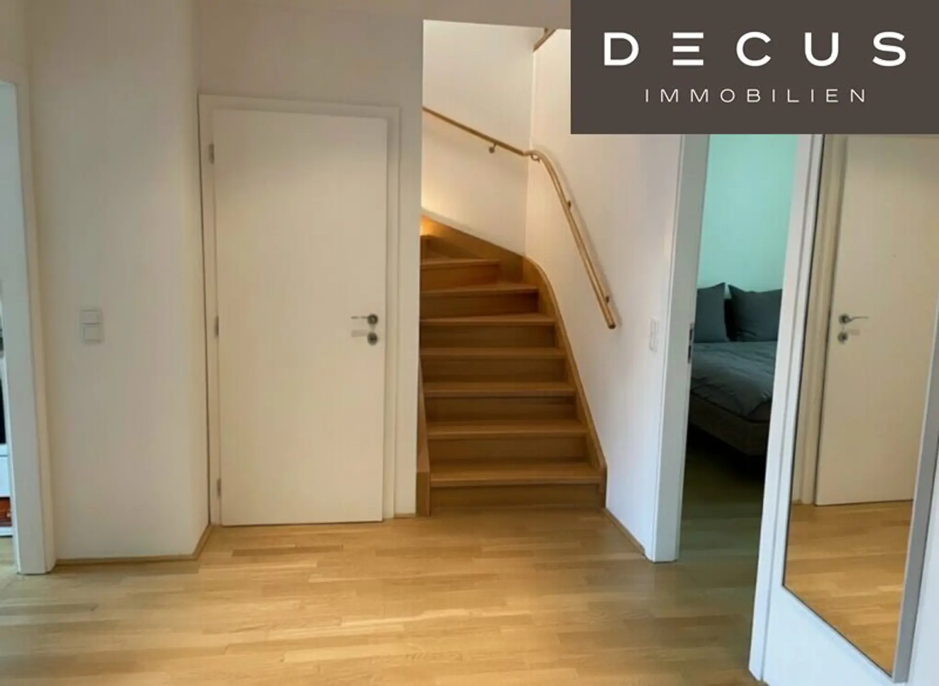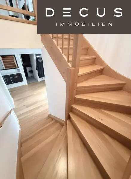 Maßgefertigte Einbauten – unter anderem von Peter Max und Lutz – verleihen der Wohnung eine elegante, individuelle Handschrift. Ein Kaminanschluss im oberen Geschoss eröffnet zusätzliche Gestaltungsmöglichkeiten. Die Wohnung wird teilmöbliert verkauft.