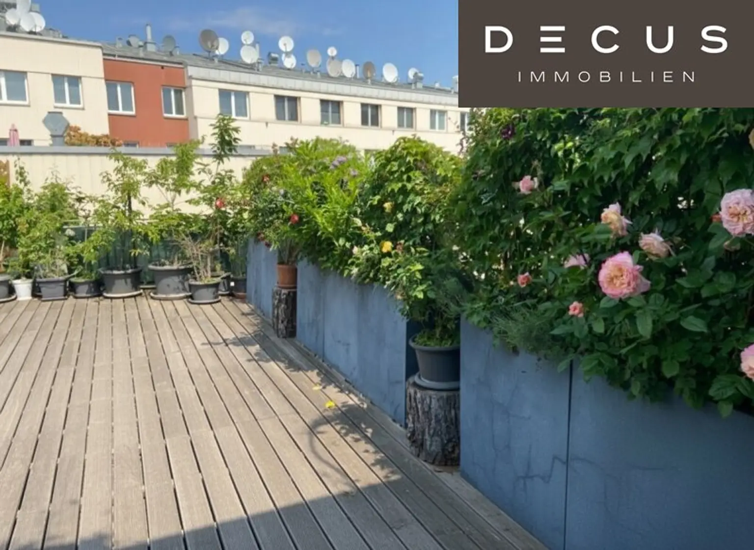 Zwei großzügige Terrassen mit Lärchenholz, bepflanzten Trögen, Hochbeet und automatischem Bewässerungssystem bilden private Outdoor-Living-Bereiche mit besonderem Charme.
