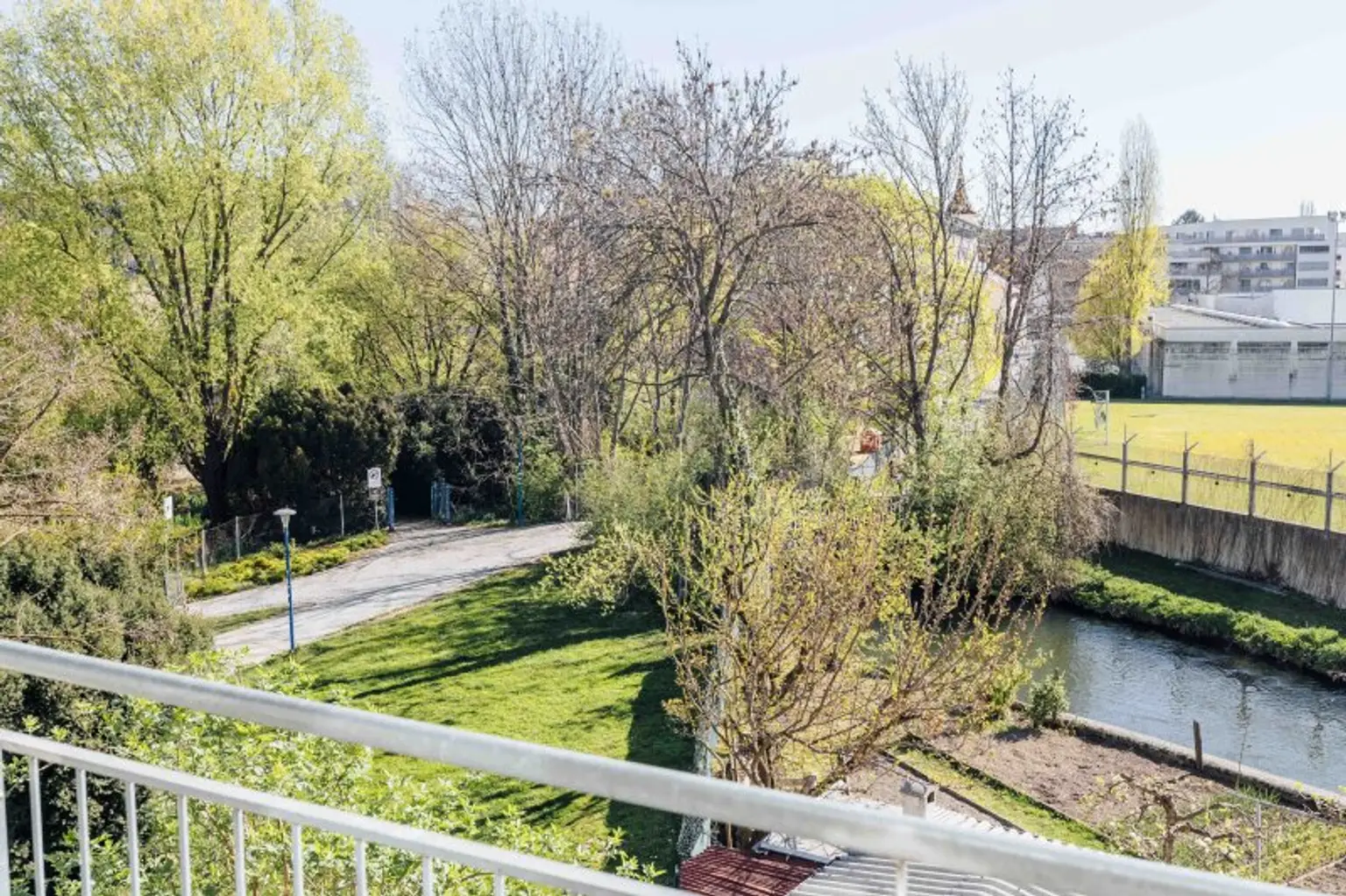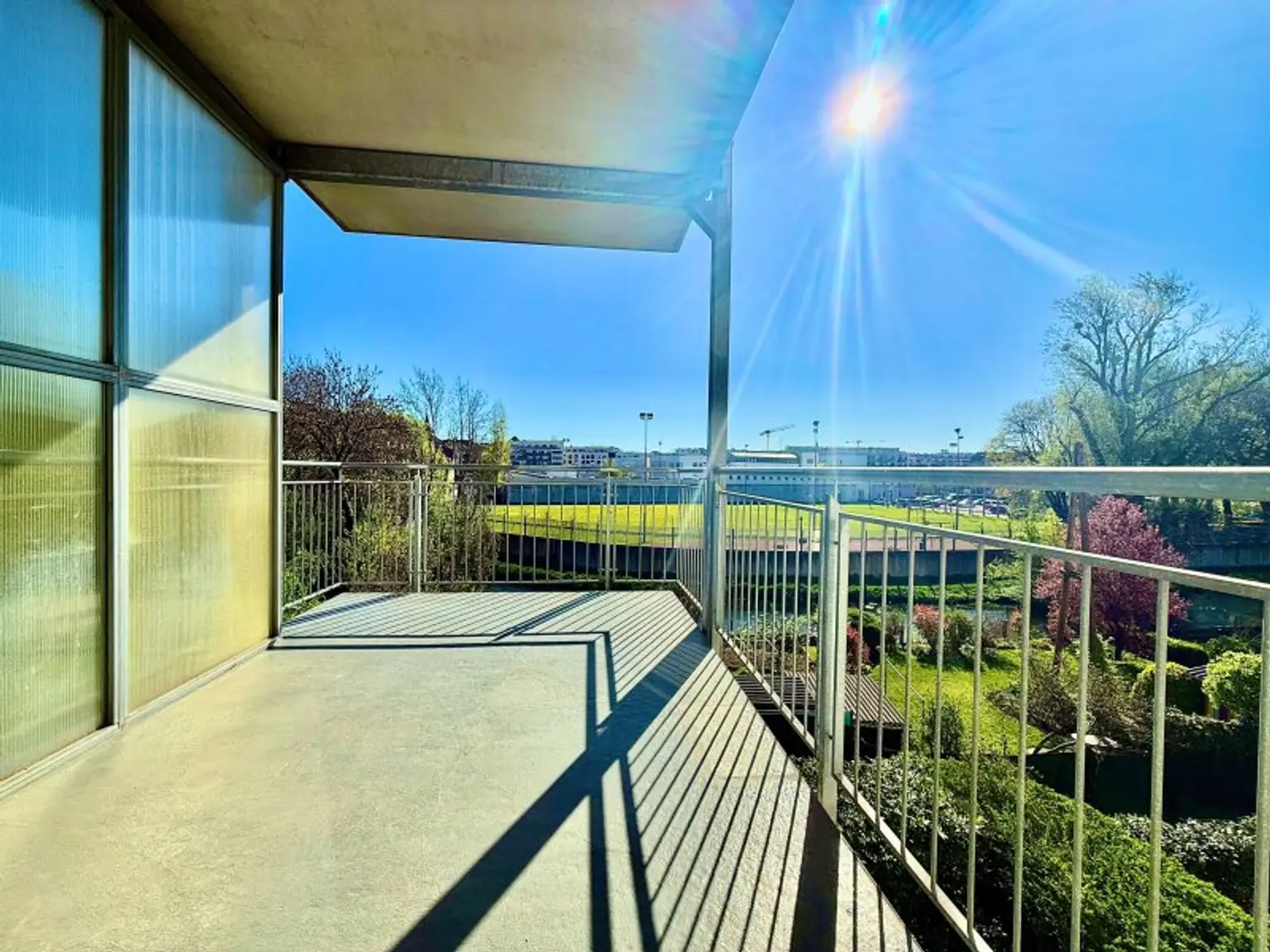 Urban gelegen und dennoch entspannt: Der innenhofseitige Balkon öffnet den Blick in Richtung Oeverseepark – ideal für alle, die zentrale Lage und Erholung im Grünen verbinden möchten.