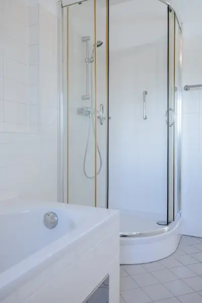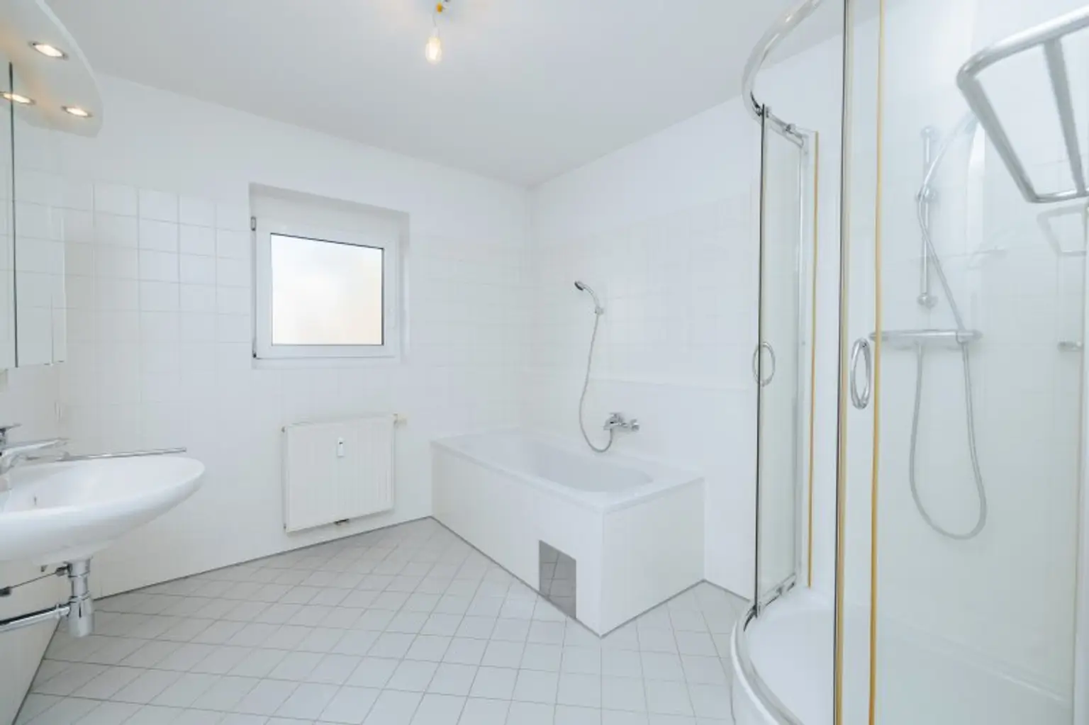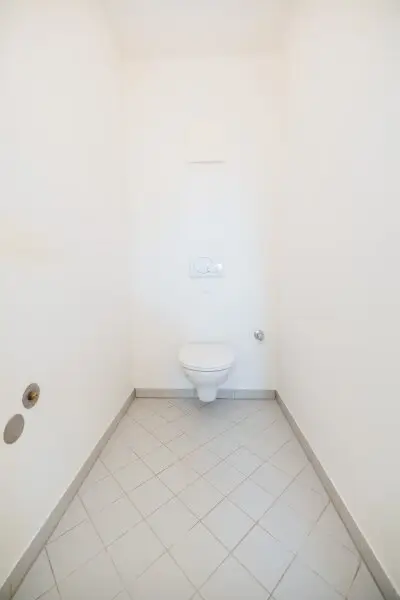 Das Badezimmer ist hell gefliest und verfügt über eine Badewanne, ein Fenster, ein Waschbecken sowie einen Waschmaschinenanschluss. Die Toilette ist separat begehbar, was den Alltag besonders komfortabel macht. Ein zusätzlicher Abstellraum sorgt dafür, dass Ordnung leichtfällt – vom Staubsauger bis zur Vorratsbox findet alles seinen Platz.