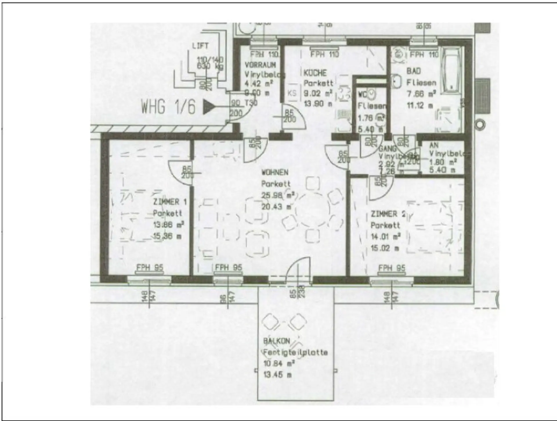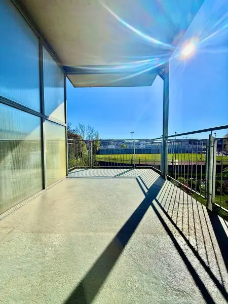Ein echtes Highlight ist der große, ostseitige Balkon mit rund 10,84 m²: Er ist innenhofseitig ausgerichtet, dadurch angenehm ruhig, und bietet mit seinem Windfang einen besonders gut nutzbaren Außenbereich – perfekt für Frühstück in der Morgensonne oder entspannte Abende mit Blick ins Grüne.