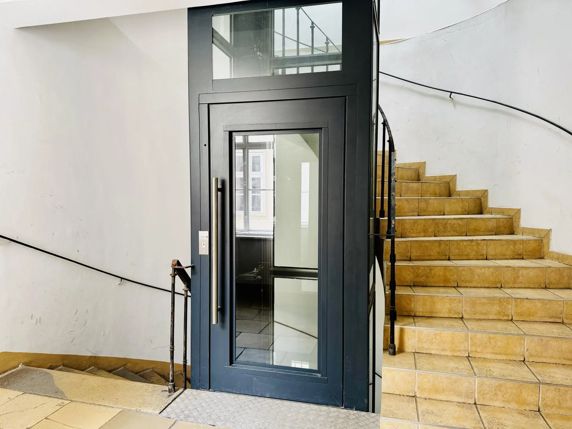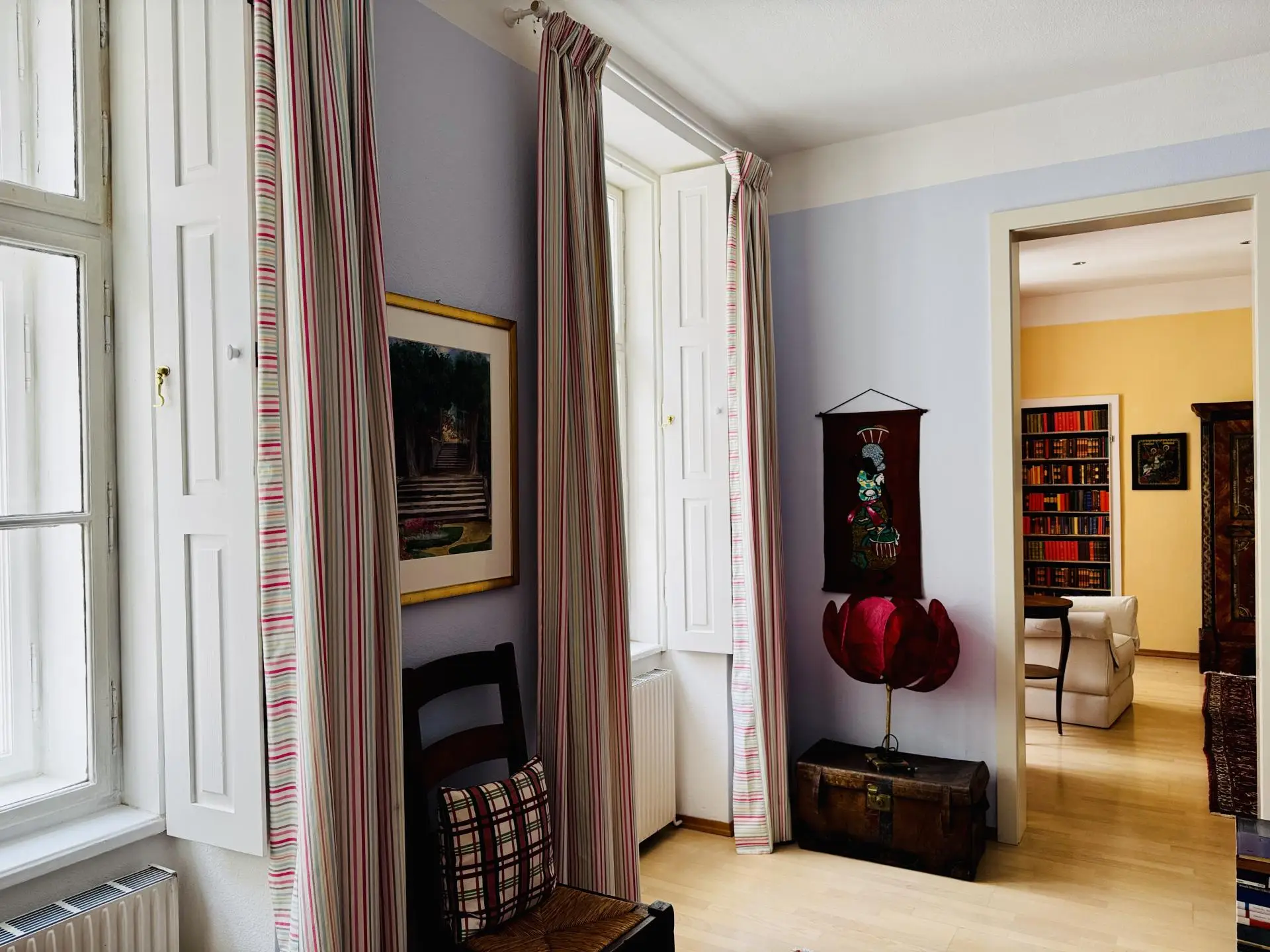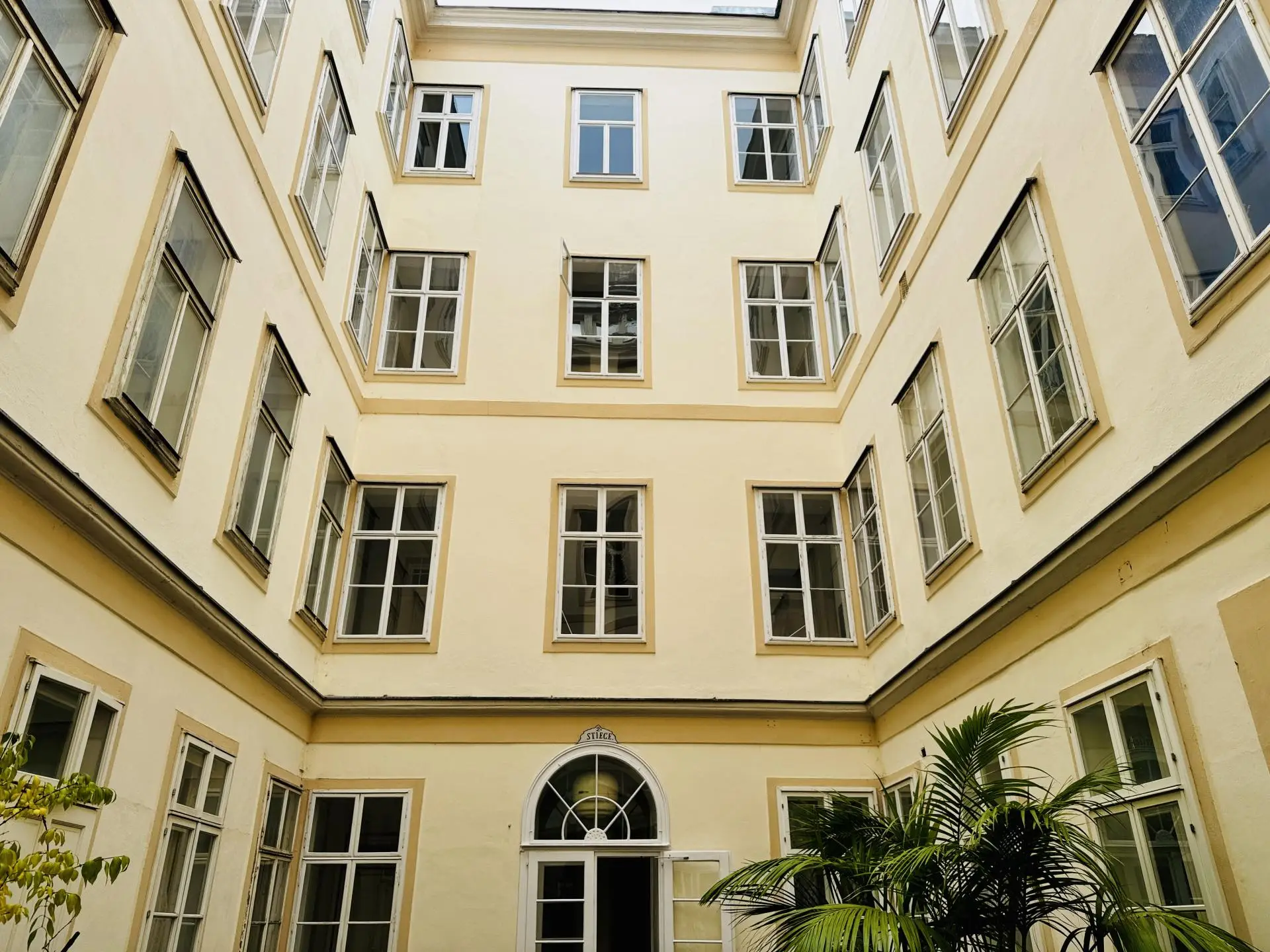 Die Wohnung ist im dritten Liftstock eines denkmalgeschützten Biedermeierhauses gelegen. Alle Zimmer sind zum ruhigen Innenhof hin orientiert.