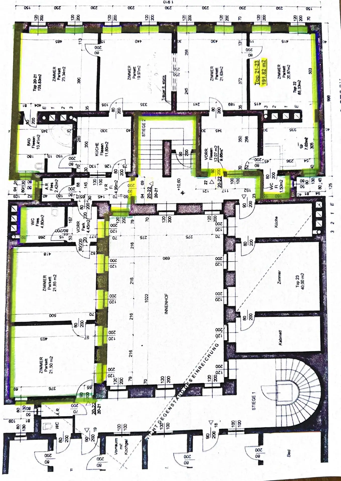 Auf 192 m² stehen 6 Zimmer, zwei Küchen, 2 Badezimmer mit WC und eine extra Gästetoilette zur Verfügung.