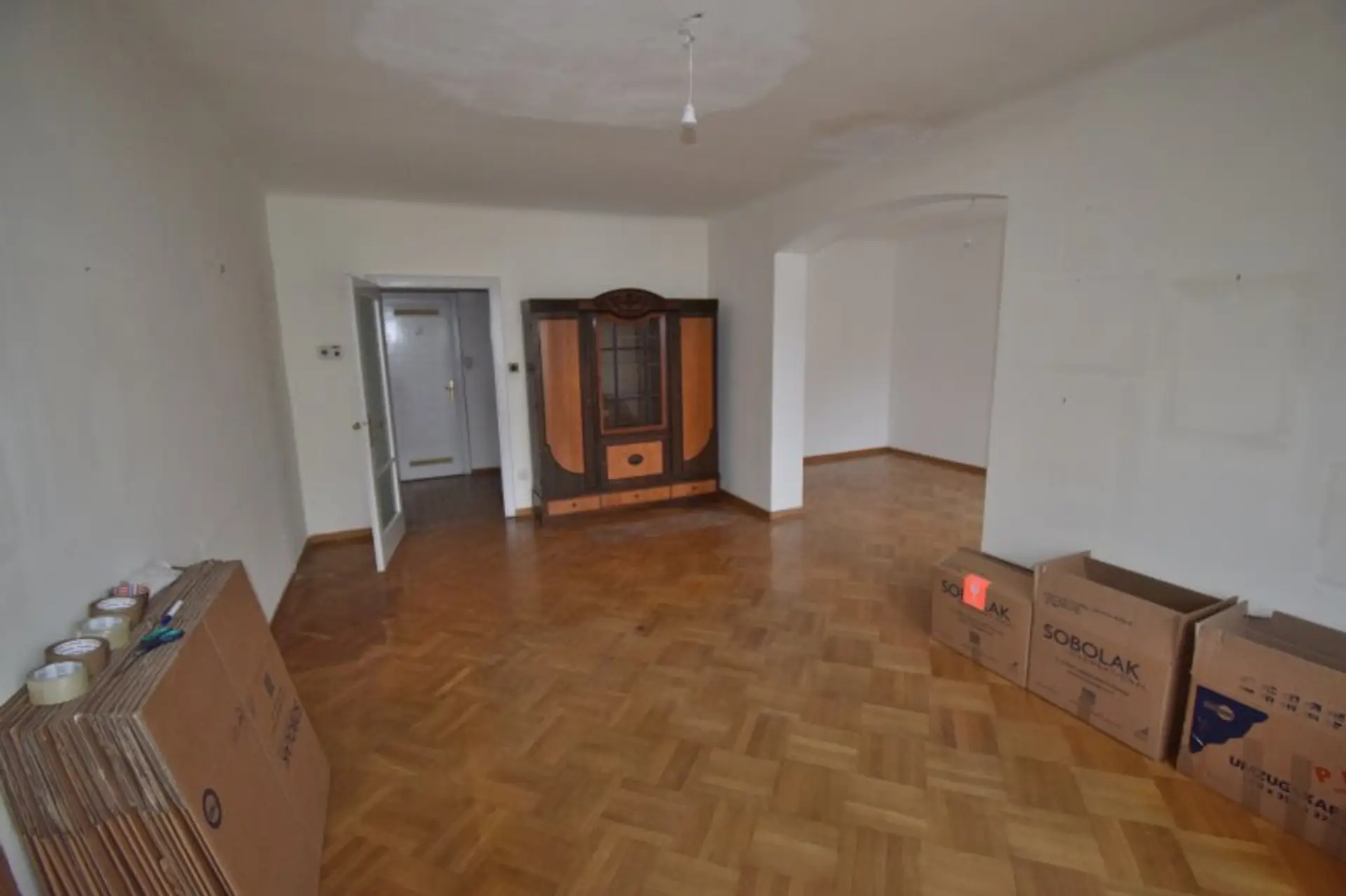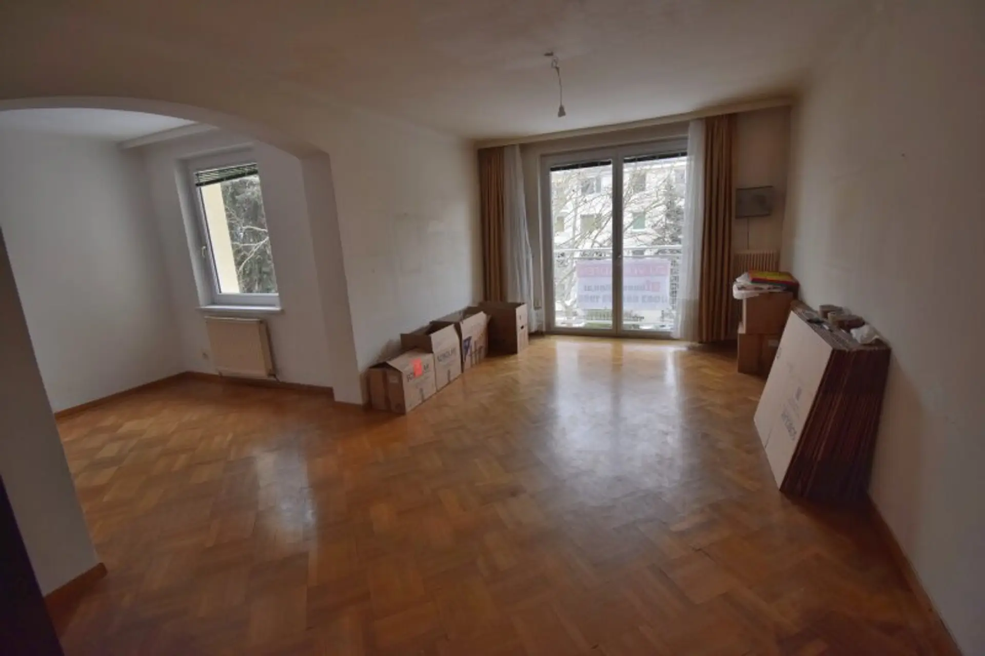 Derzeit hat die Wohnung 3 Zimmer, ursprünglich 4 Zimmer, einfach wieder teilbar.