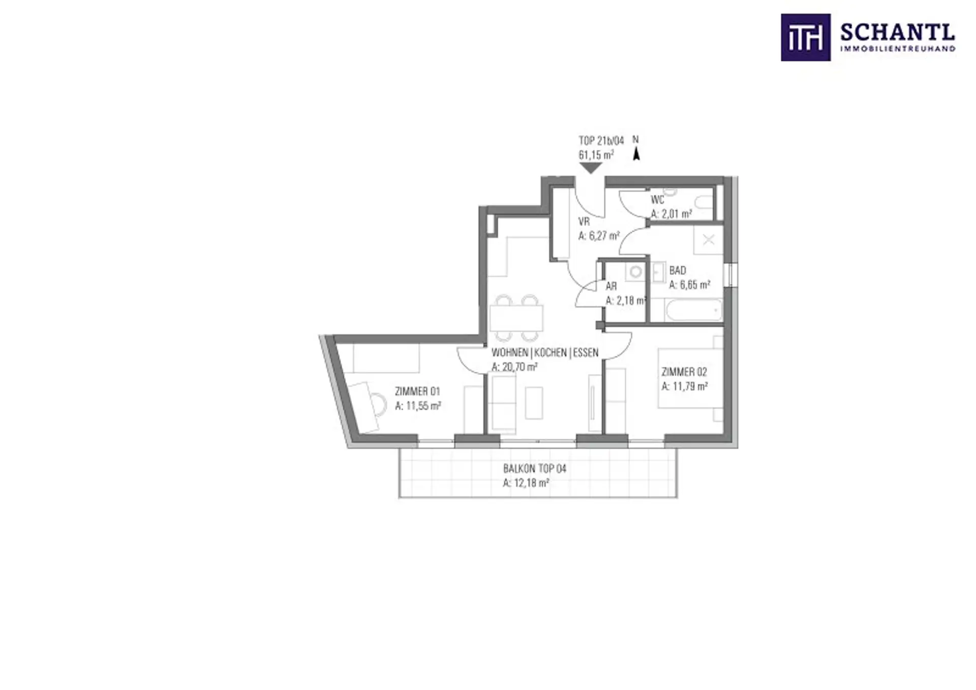 Mit einer großzügigen Wohnfläche von 63 m² sowie sensationelle 12 m² Balkon.