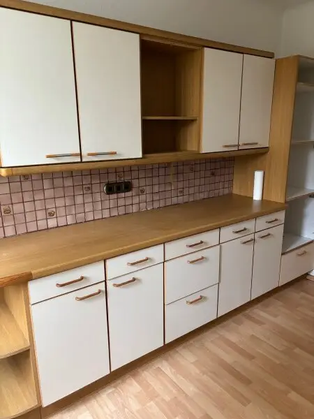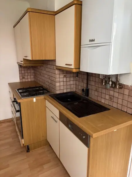 Wohnzimmer, Schlafzimmer und Küche mit Laminatböden