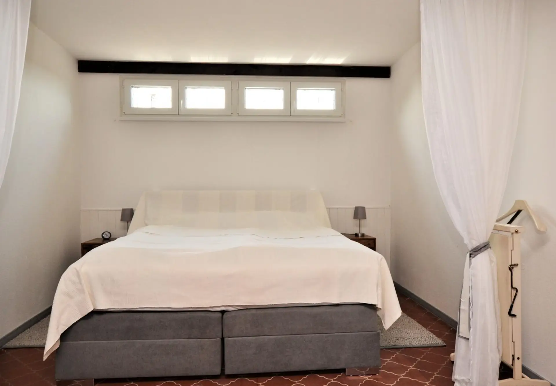 Das Haus bietet eine funktionale Raumaufteilung. Zwei Badezimmer, jeweils mit WC und Waschtisch sowie einmal mit Dusche und einmal mit Badewanne ausgestattet.