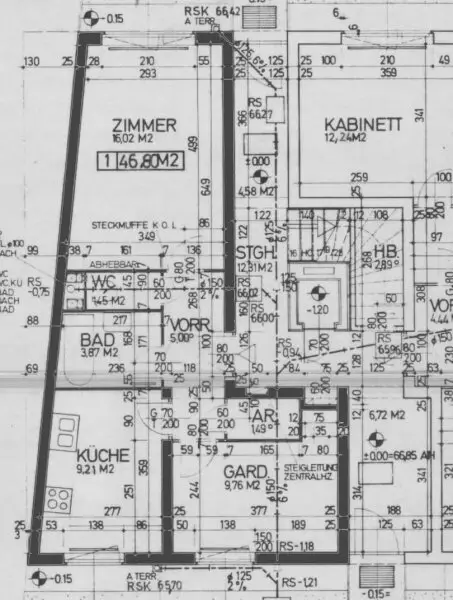 Die unweit der Hütteldorfer Straße im Ortsteil Baumgarten liegende Wohnhausanlage wurde im Jahre 1976 errichtet und umfasst ein straßenseitiges und ein dahinter, im Hof liegendes Wohnhaus. Die angebotene Wohnung hat knapp 48 m² und liegt ruhig, abseits vom Straßenlärm, in Haus 2 im Erdgeschoß. Das zentrale Vorzimmer erschließt westseitig gelegen Küche und ein kleines Schlafzimmer, ein ostseitig in den Allgemeingarten ausgerichtetes Wohnzimmer, und innenliegend Bad, WC und Abstellraum. Die Beheizung erfolgt in Küche und Wohnzimmer mittels Nachtspeicheröfen, im Schlafzimmer gibt es einen kleinen Elektro-Radiator. In Schlaf- und Wohnzimmer sind Parkettböden verlegt, sonst Fliesen- bzw. PVC-Böden. Die Wohnung ist renovierungsbedürftig und bietet dadurch viel Potenzial zur individuellen Gestaltung.