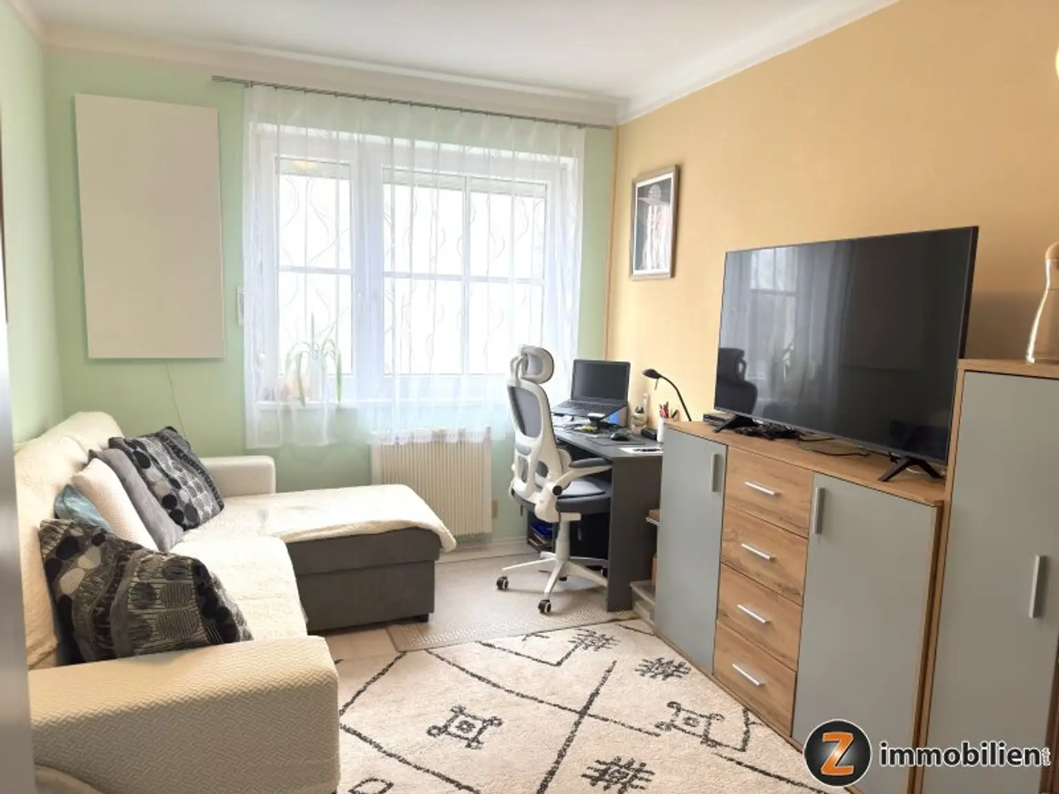 Güssing: Diese ruhige Eigentumswohnung im 1. Stock (88,42 m² Wfl.) mit Blick auf die Burg Güssing bietet: 2 Schlafzimmer, ein großzügiges Wohnzimmer mit Zugang zum Balkon (6,6 m²), Flur, Küche mit Abstellraum, Badezimmer mit Dusche, Fenster, Waschmaschinenanschluss und Fußbodenheizung sowie ein separates WC. Weiters verfügt die Wohnung über ein Nutzungsrecht für ein Kellerabteil: großer Keller mit der Möglichkeit, Holz zu lagern, sowie einem eigenen Stromanschluss (z. B. für eine Kühltruhe). Ein Carport steht ebenfalls zur Verfügung und kann um einen Mietpreis von 23,35 EUR genutzt werden. Heizung: Kachelofen mit elektrischem Lüftungssystem für längere Brenndauer und besonders angenehme, langanhaltende Wärme, sowie Elektroradiatoren und Infrarotpaneel. Fenster: Kunststofffenster mit Rollläden und Insektenschutzgittern. Betriebskosten: 250,96 EUR inkl. Instandhaltungsrücklagen und Verwaltung. Heizung und Strom sind separat zu bezahlen.