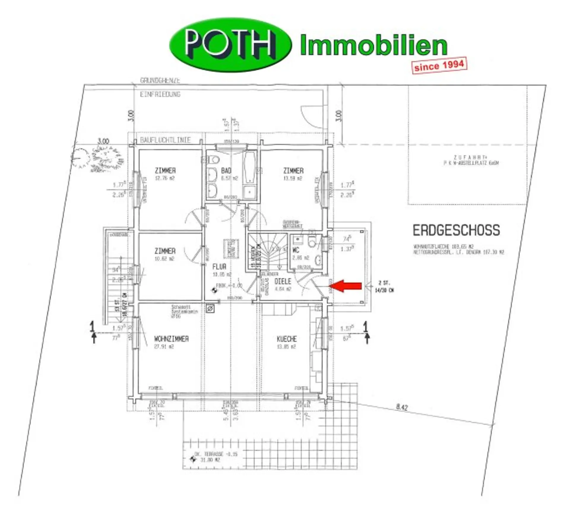 Gebäude-Flächenaufstellung: KG: ca. 100,03m² + EG: ca. 103,65m² + Wintergarten: ca. 20,50m²