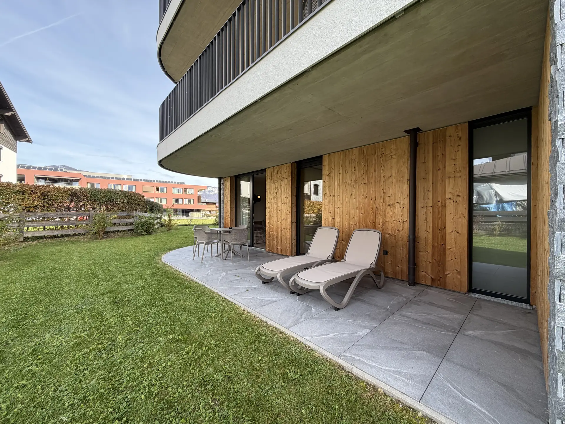 Alle Appartements werden vollständig und löffelfertig ausgestattet übergeben und sind direkt einsatzbereit. Im Erdgeschoss befinden sich vier Einheiten mit großzügigen Terrassen und privaten Gartenanteilen. Im Obergeschoss liegt ein exklusives Appartement mit besonders großer Terrasse und Panoramablick auf die umliegende Bergwelt.