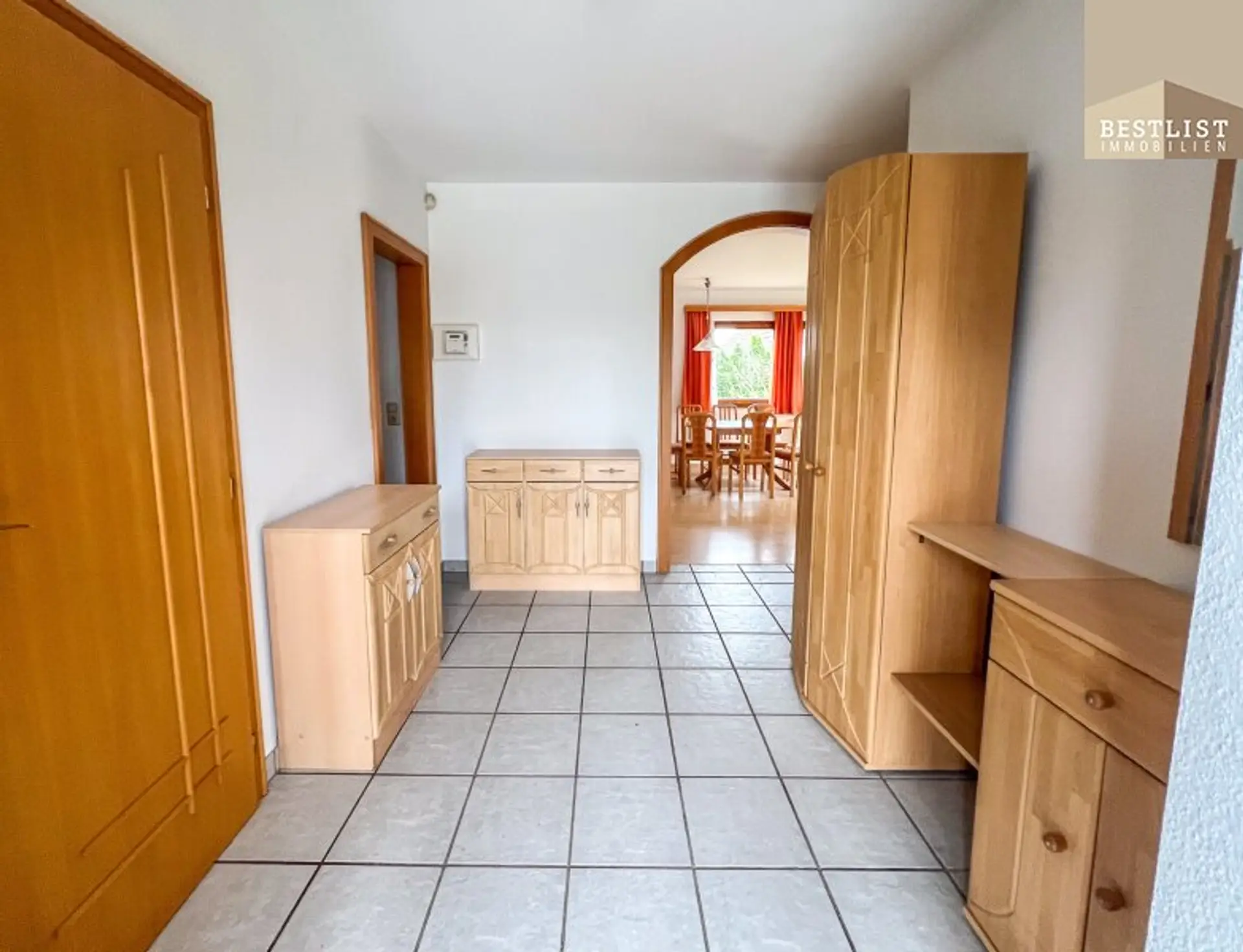 Bereits beim Eintreten empfängt Sie ein zentral gelegenes Vorzimmer, das alle Bereiche des Erdgeschoßes übersichtlich erschließt. Ein separates WC mit Waschmaschinenanschluss sowie eine Garderobe sorgen für Alltagstauglichkeit und Ordnung.