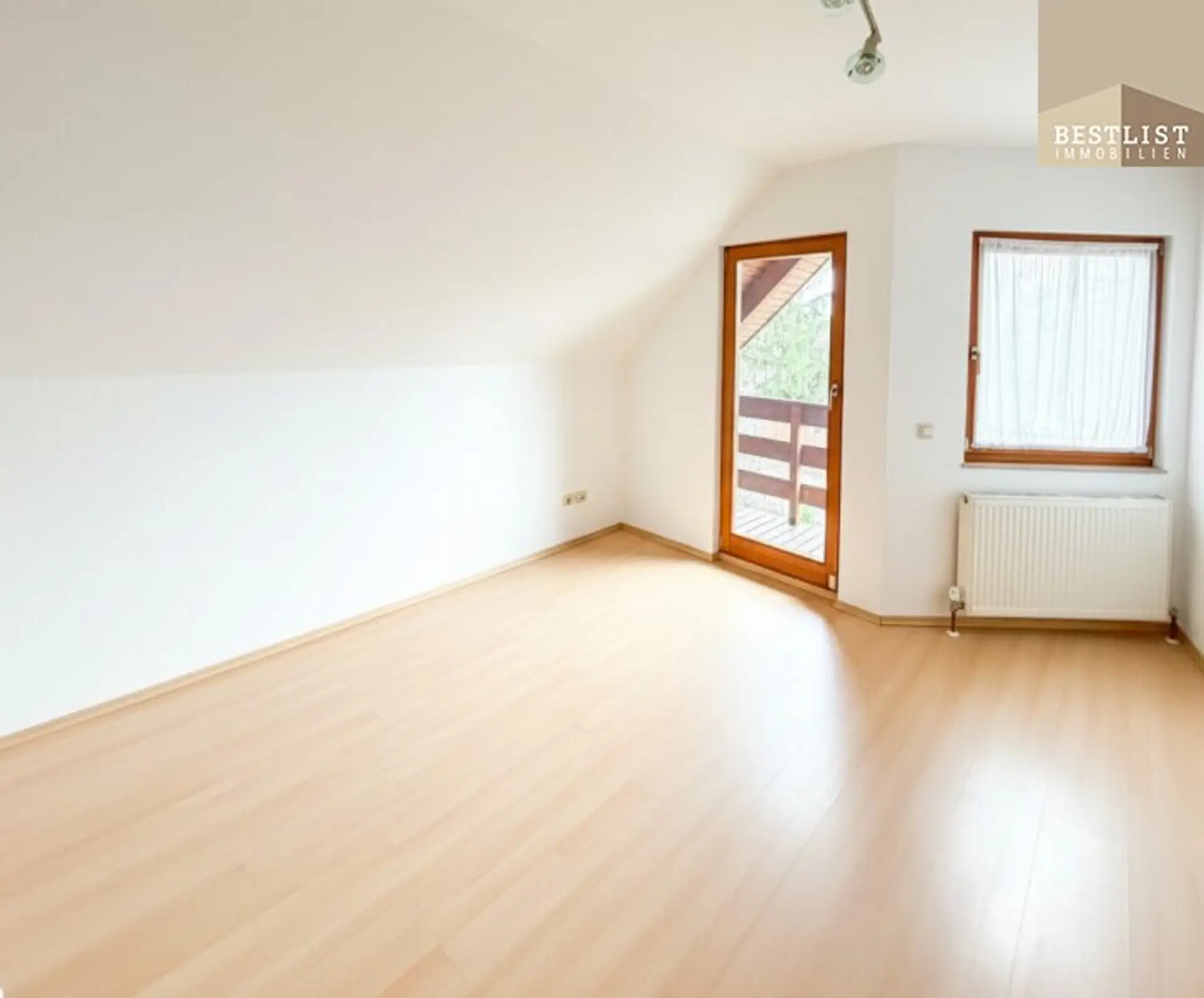 Das Obergeschoß bietet drei gut proportionierte Zimmer, eines davon mit eigenem Balkon. Ein weiteres Zimmer wurde bislang als Schrankraum genutzt und eignet sich ideal als begehbare Ankleide oder ruhiges Home-Office.