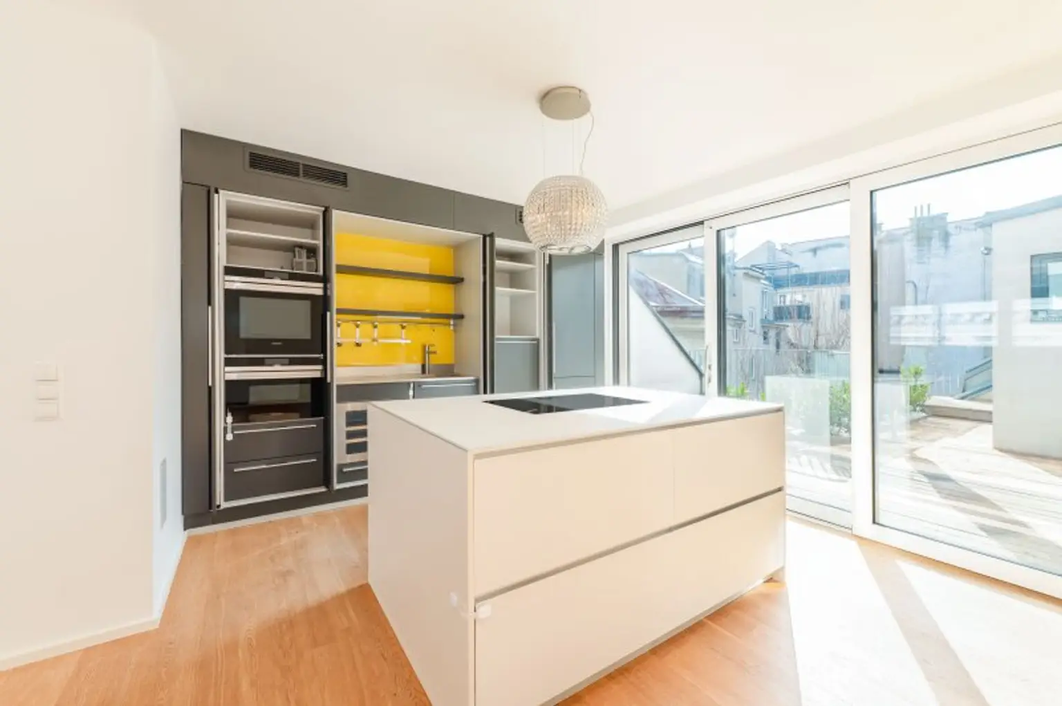 Bereits beim Betreten der Wohnung empfängt Sie ein einladender Vorraum, welcher direkt in den offen gestalteten Wohnbereich führt. Das Herzstück der Wohnung bildet das lichtdurchflutete Wohn- und Esszimmer, das mit seiner Helligkeit, den großen Fensterflächen und dem Zugang zur Terrasse ein Gefühl von Weite und Leichtigkeit vermittelt. Die klare Raumstruktur bietet reichlich Platz für gemütliche Abende ebenso wie für repräsentatives Wohnen. Die hochwertige Einbauküche mit Siemens- und Gaggenaugeräten, welche mit ihrer praktischen Aufteilung keine Wünsche offen lässt – eignet sich ideal für alle, die gerne kochen und dennoch den Kontakt zum Wohnbereich nicht verlieren möchten.
