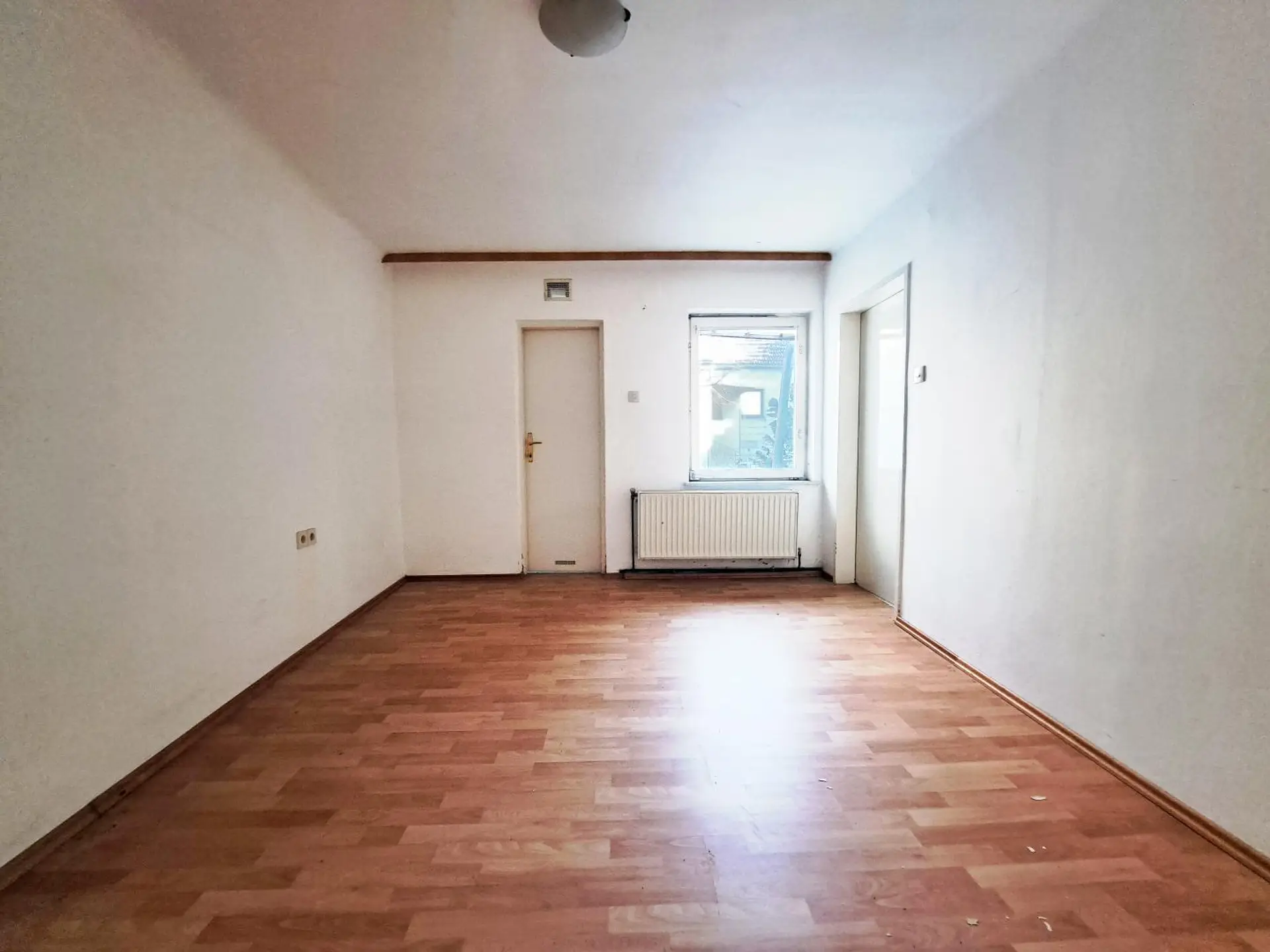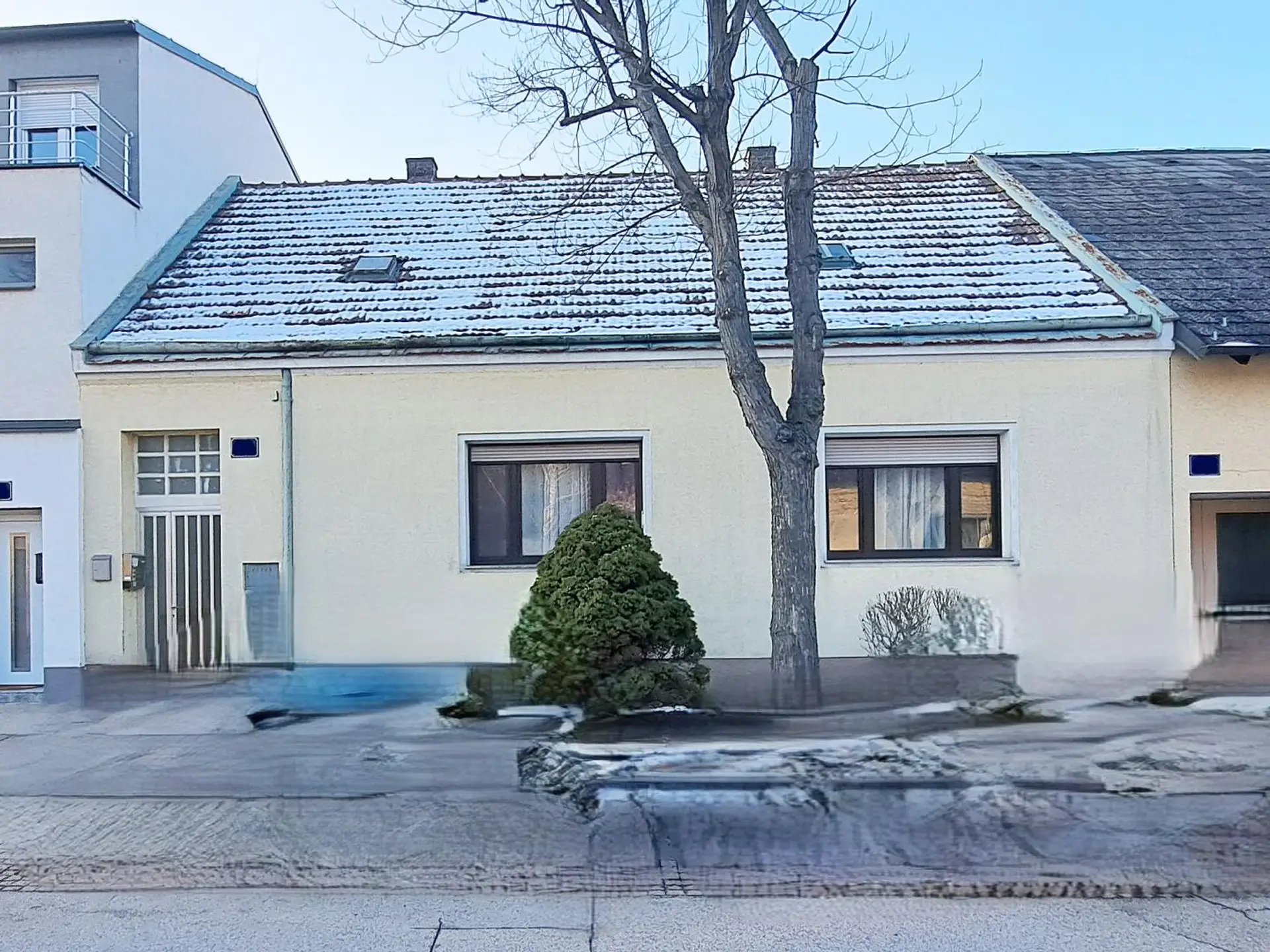Zum Verkauf gelangt ein ca. 89 m² großes, renovierungsbedürftiges und teils unterkellertes Einfamilienhaus in zentraler Lage in Rannersdorf. Es ist westlich ausgerichtet, beinhaltet 2 1/2 Zimmer und teilt sich auf wie folgt: