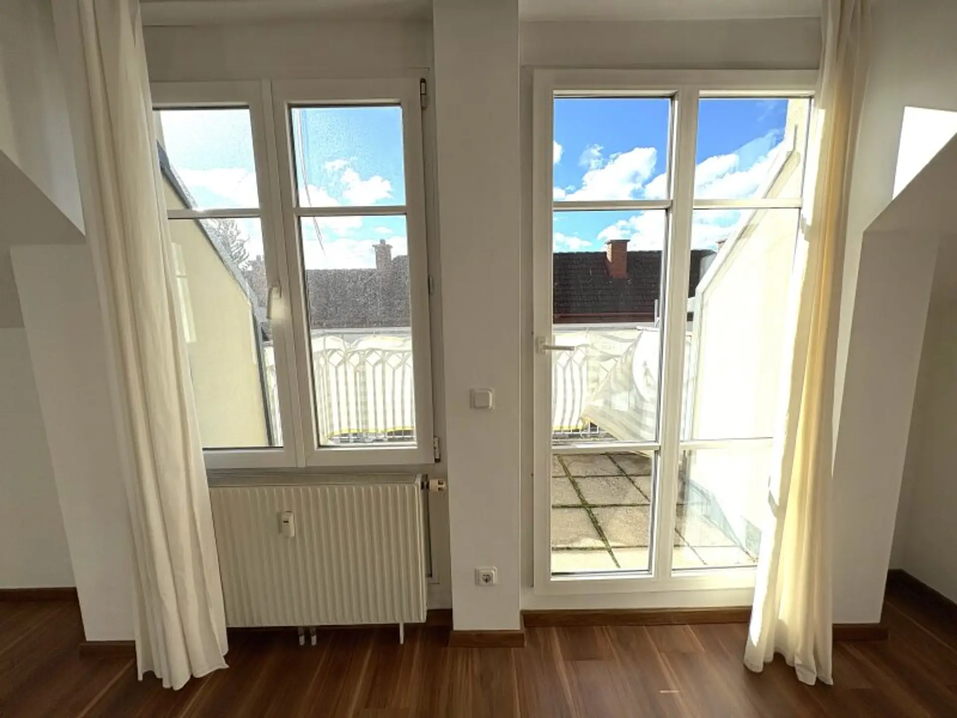 Ein besonderes Highlight ist die sonnige Terrasse (5,58 m²) mit Blick ins Grüne – hier lassen sich entspannte Stunden genießen, egal ob beim Frühstück in der Morgensonne oder bei einem Glas Wein am Abend.