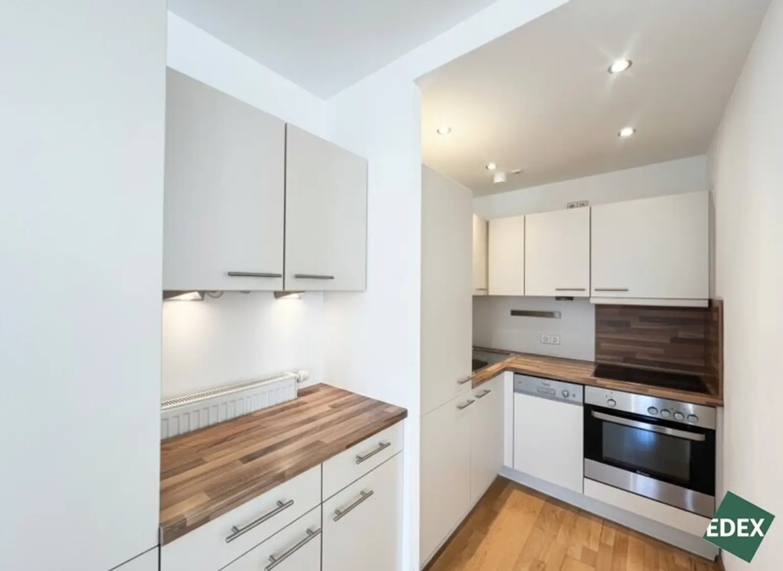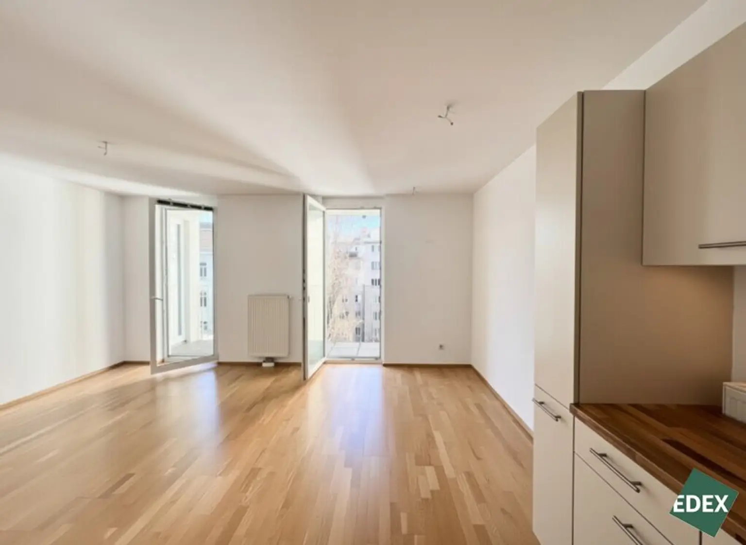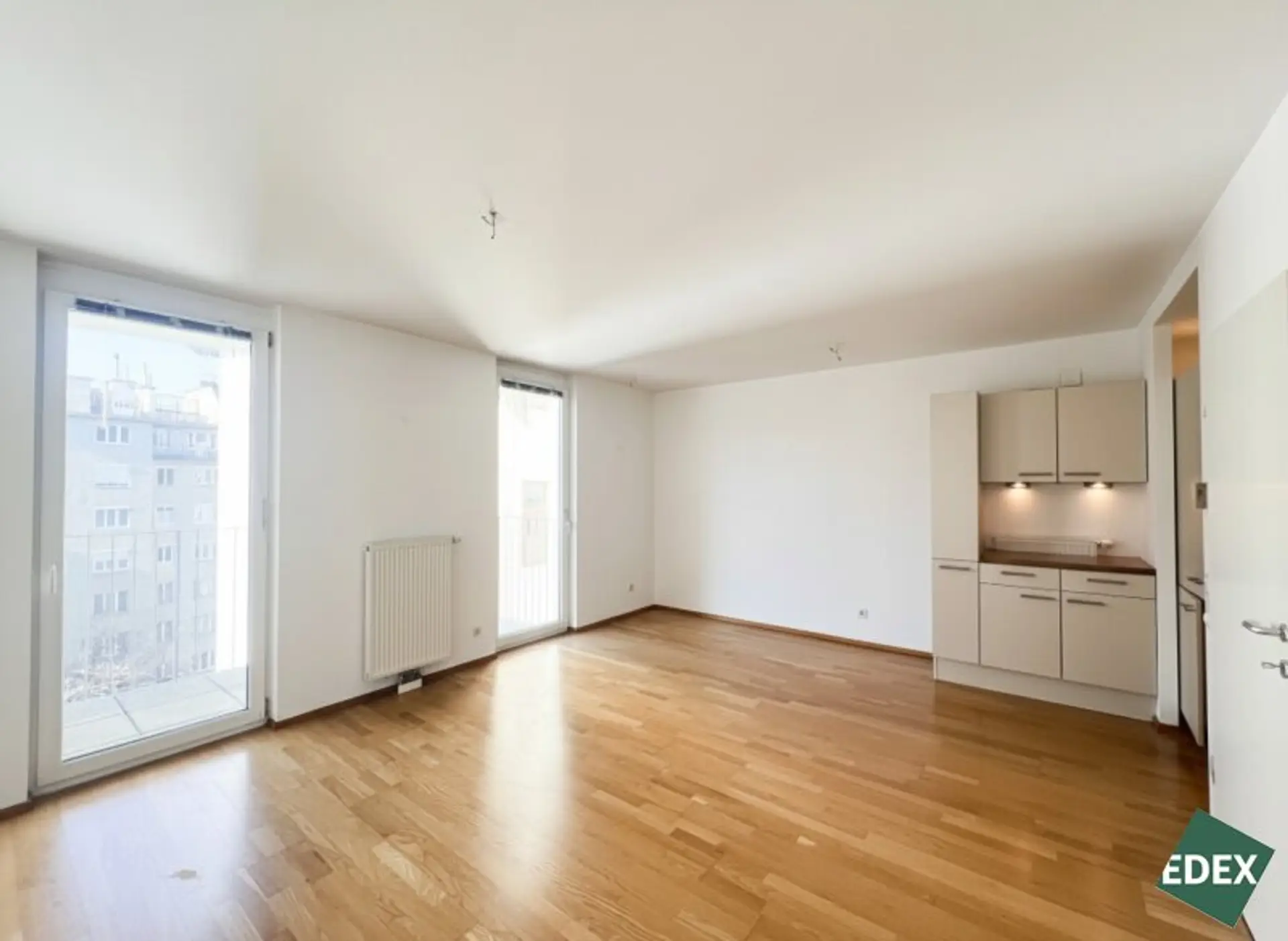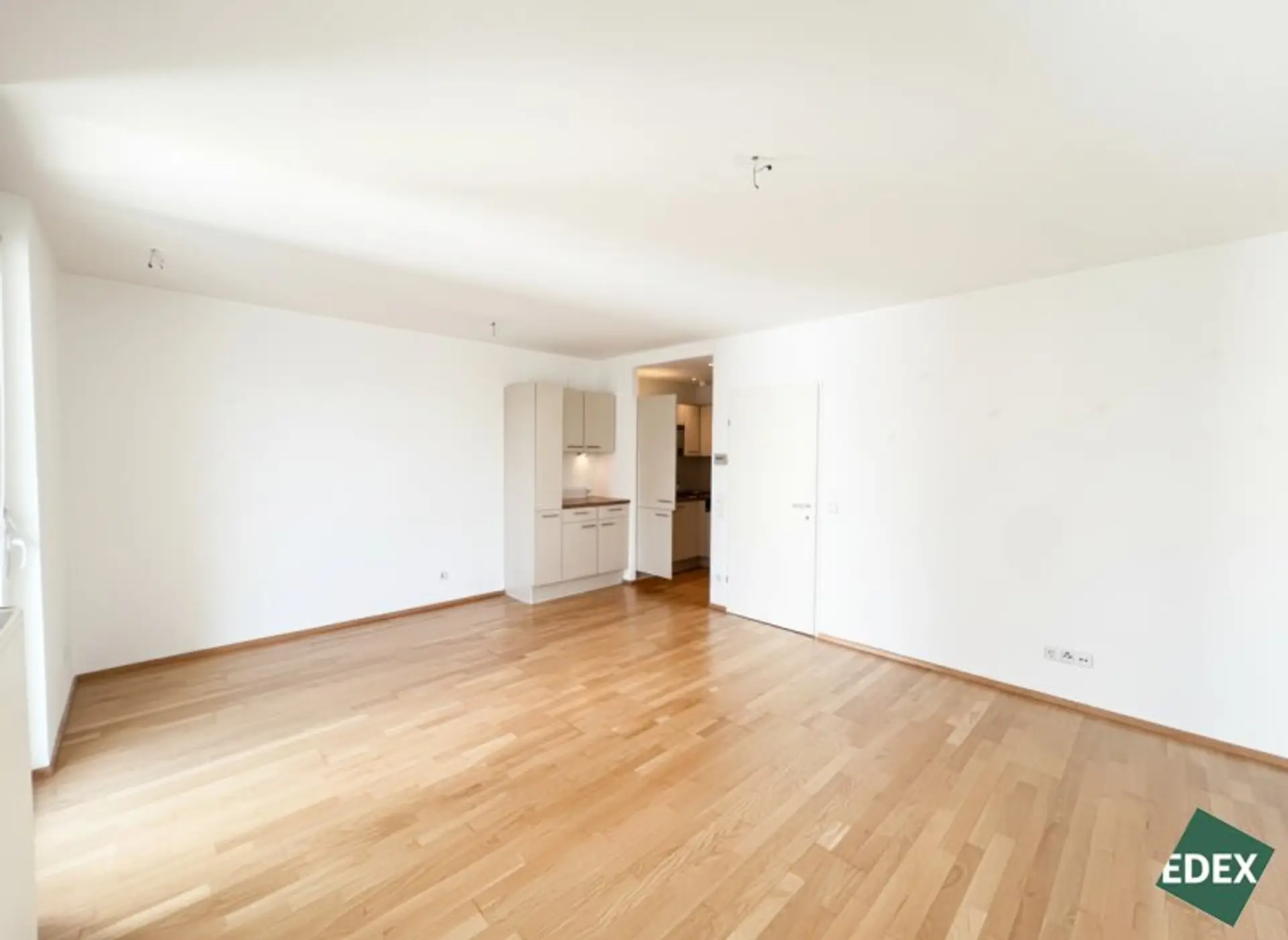 Über den zentral gelegenen Vorraum sind sämtliche Räume bequem begehbar. Das helle Wohn- und Esszimmer mit integrierter Kochnische und ausgestatteter Küche bildet das Herzstück der Wohnung und bietet direkten Zugang zum ca. 6 m² großen Balkon – ideal für entspannte Stunden im Freien. Das Schlafzimmer ist ebenfalls zentral vom Vorraum aus erreichbar und hat einen Zugang auf den Balkon.