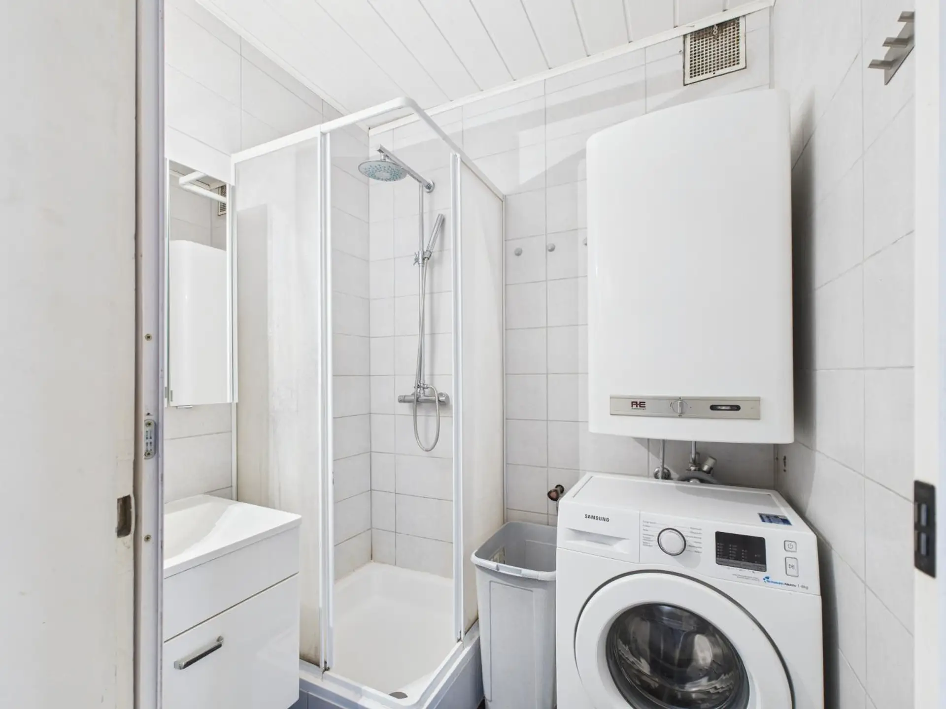 * Badezimmer mit Dusche und Waschmaschine