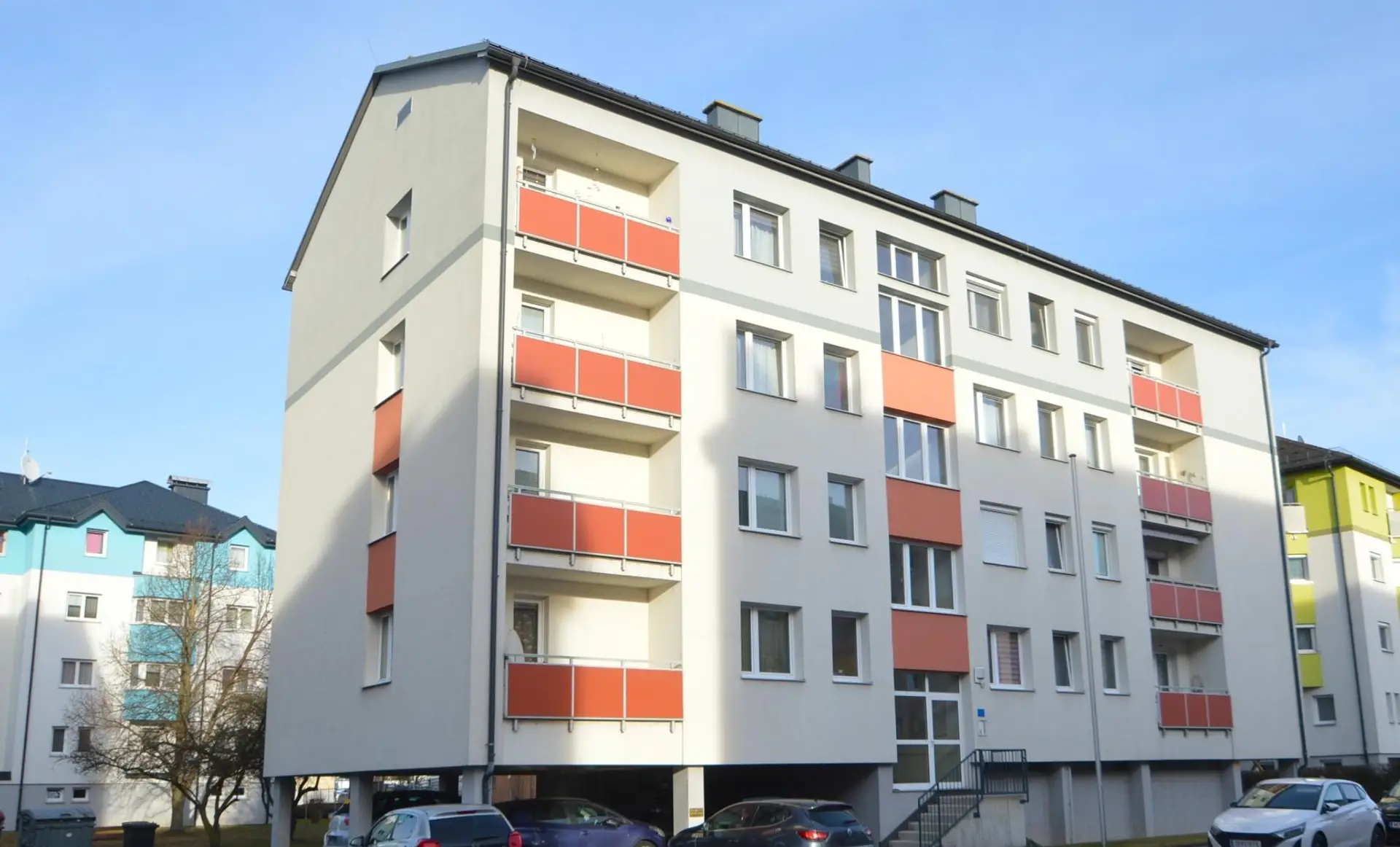 * sehr zentral und doch ruhig – kein Bewohner oberhalb, zur Nebenstraße und zum Freizeitzentrum ausgerichtet