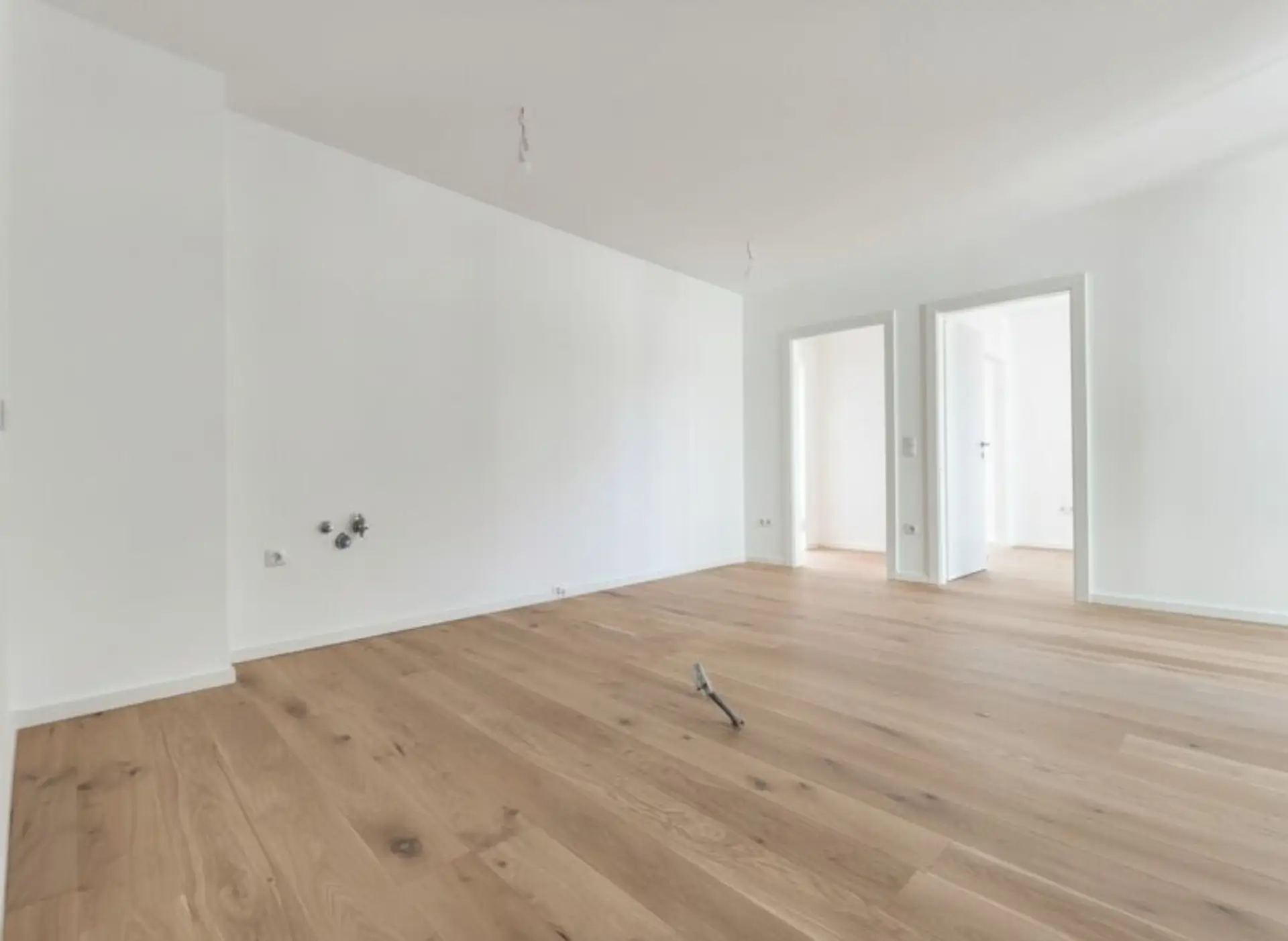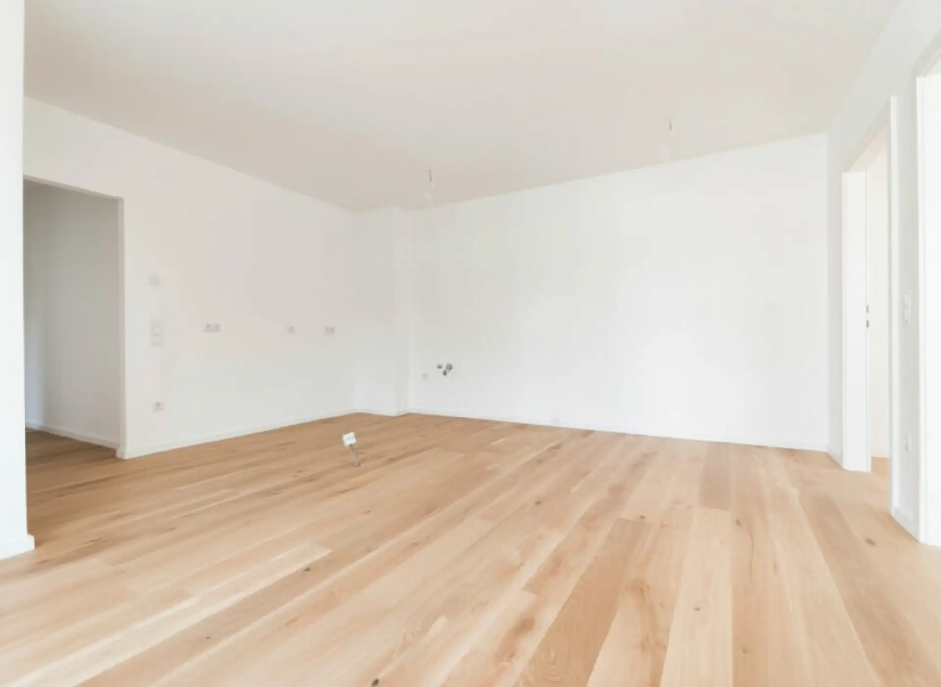 3-Schicht-Eichenparkett mit ca. 2,5 mm Nutzschicht, elegante Sockelleisten sowie großformatige keramische Fliesen in den Nassräumen unterstreichen den hochwertigen Charakter der Wohnungen.
