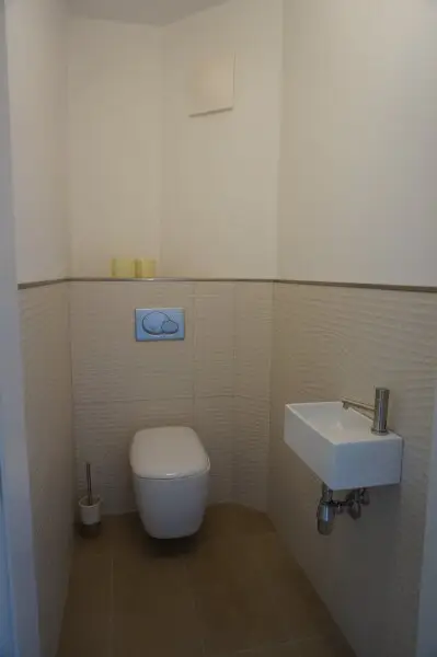 Im Vorraum befindet sich eine Toilette mit Handwaschbecken.