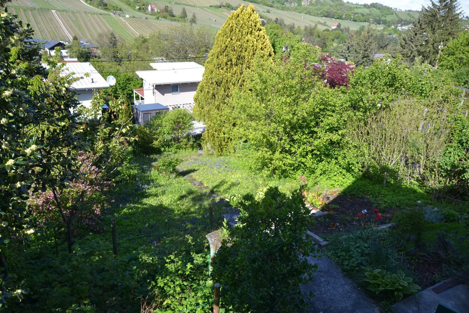 Das Grundstück bietet eine traumhafte unverbaubare Fernsicht auf die gegenüberliegenden Weinberge von Neustift und die Ausläufer des Wienerwalds. Auf dem Grundstück steht ein Kleingartenhaus mit ca. 60m² Wohnfläche verteilt auf 3 Ebenen, bestehend aus einem Wohnraum, einem separaten Essbereich einer Küche, einem Bad mit Dusche und WC und auf der oberen Ebene einem Schlafraum mit herrlichem Ausblick. Das Grundstück ist an das öffentliche Strom- Wasser und Kanalnetz angeschlossen, Gas befindet sich an der Grundstücksgrenze.