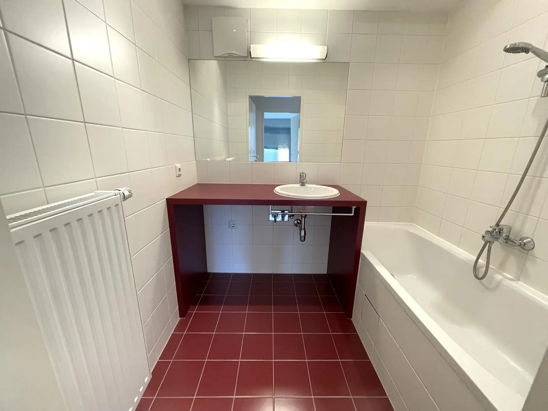 • Badezimmer mit Badewanne und Waschmaschinenanschluss