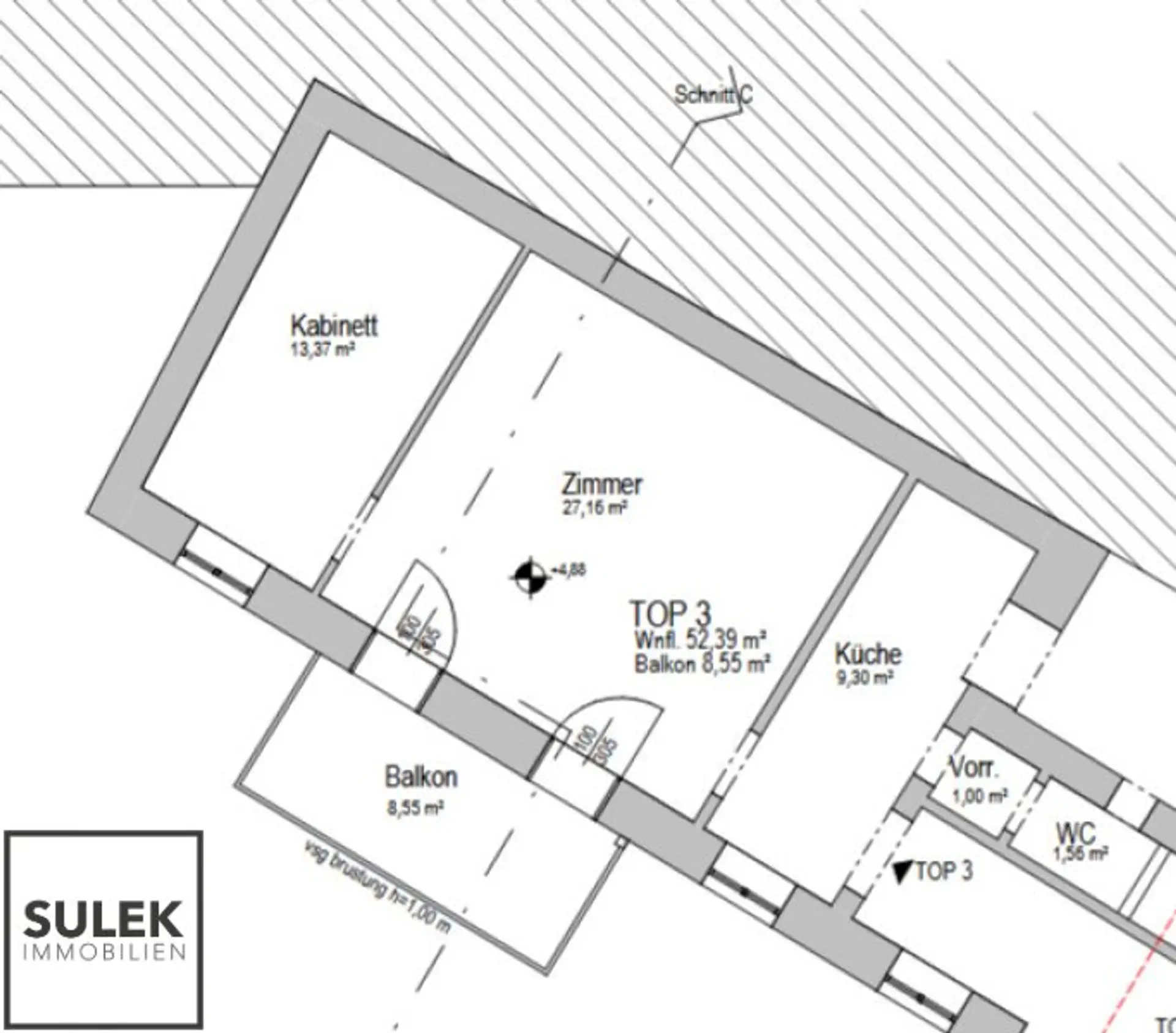 * Großzügiger Balkon in den Innenhof ist bereits genehmigt und wird vom Eigentümer errichtet