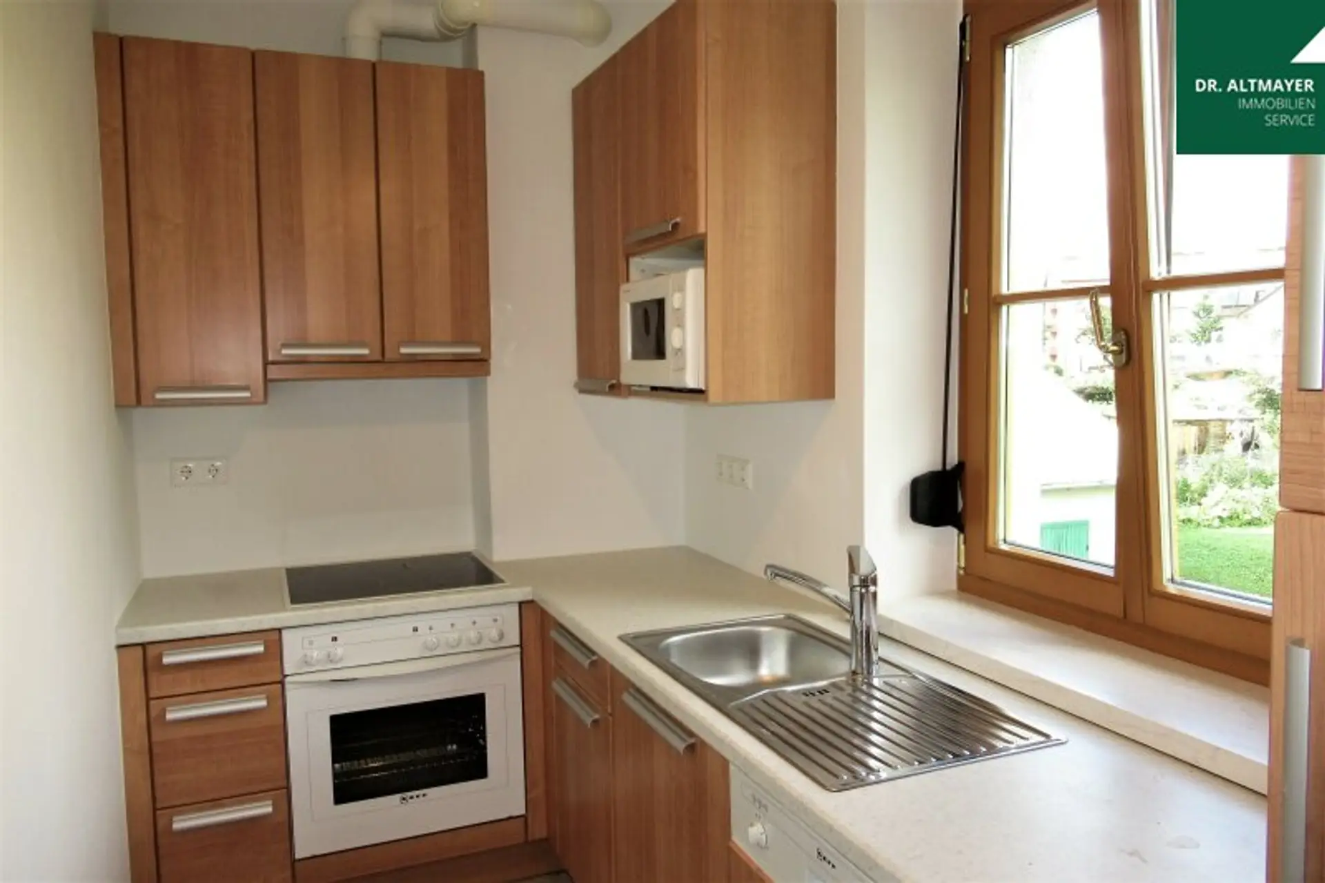 Die geräumige Einbauküche bietet ausreichend Platz für Ihre Kochkünste und ist mit allen notwendigen Elektrogeräten ausgestattet. Hier können Sie sich kulinarisch austoben und Ihre Gäste beeindrucken. Der angrenzende Südbalkon lädt zu entspannten Stunden an der frischen Luft ein und bietet einen wunderschönen Blick in den gepflegten Garten.