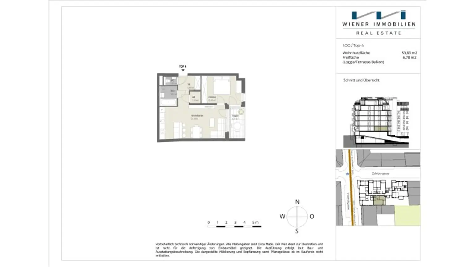 Die Wohnung verfügt über ein Vorzimmer, eine großzügige Wohnküche mit Ausgang auf die ca. 7 m² große Loggia, ein Schlafzimmer, ein Badezimmer, ein separates WC sowie einen Abstellraum. Große Fensterflächen sorgen für viel Tageslicht.