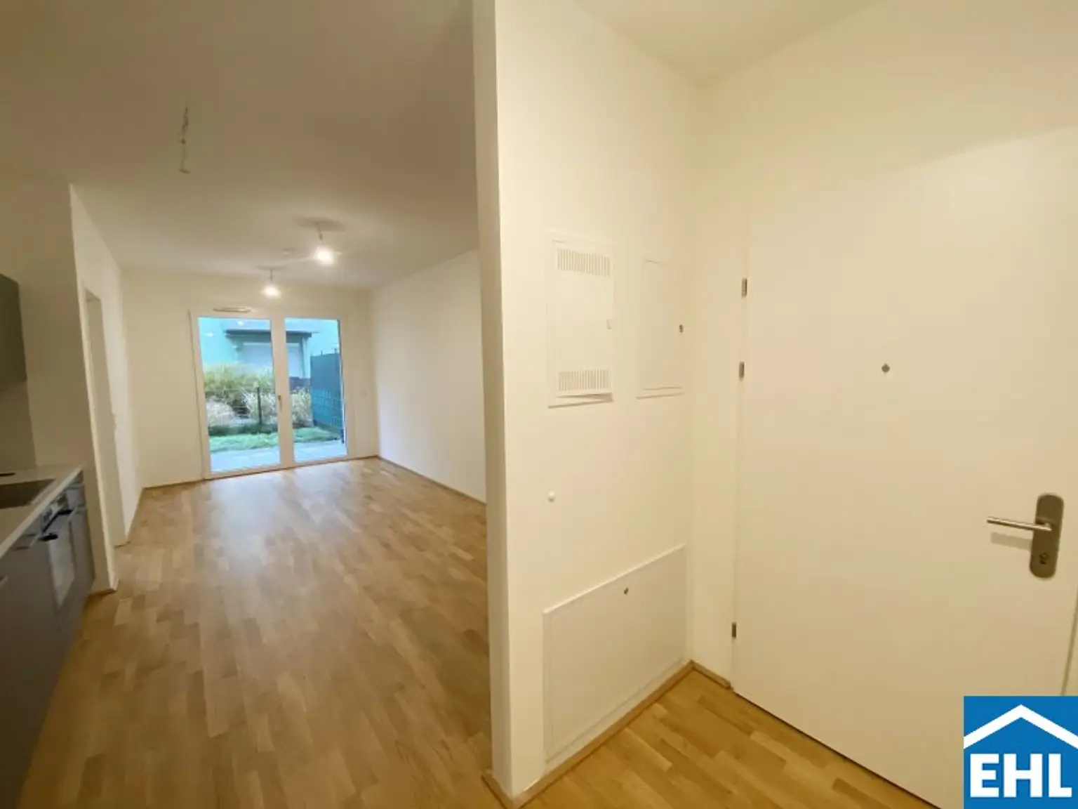 Die Wohnung selbst befindet sich im Erdgeschoss und gliedert sich in eine geräumige Wohnküche mit vollausgestatteter Einbauküche, ein Schlafzimmer mit Schrankabteil, ein Badezimmer mit Badewanne, Waschmaschinenanschluss und WC, sowie einen Vorraum. Der dazugehörige Eigengarten mit Terrasse lädt zum gemütlichen Verweilen im Freien ein und rundet das Wohnerlebnis perfekt ab.