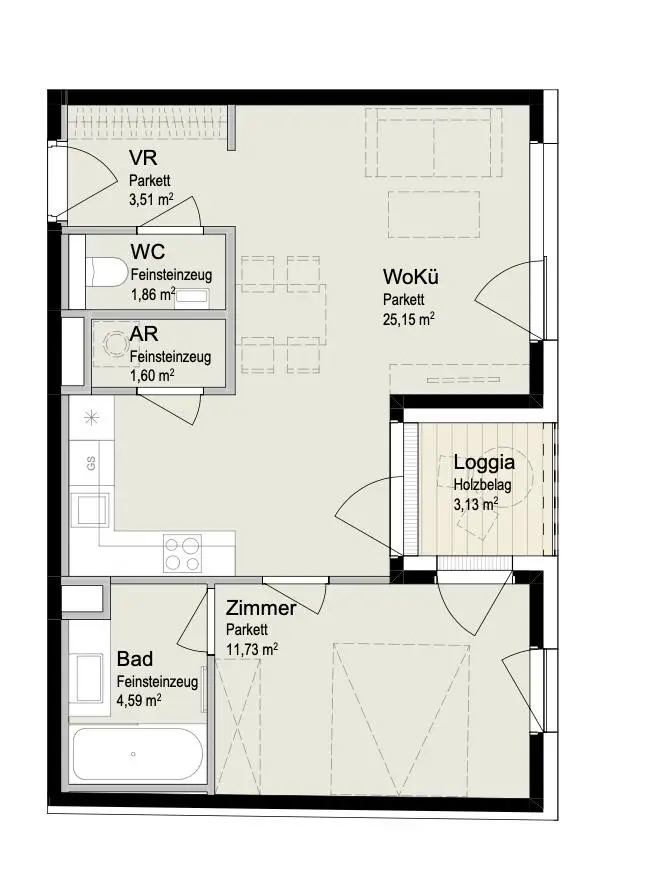 2 Zimmer - Neubauwohnung mit 51,57m² Wohnfläche, davon 3,13m² Loggia!