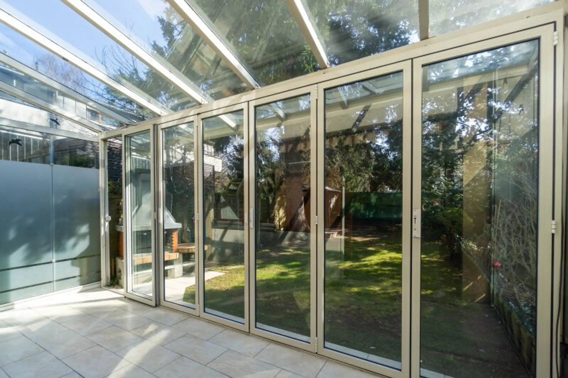 Im Erdgeschoß gelangt man über einen Windfang in den zentralen Flur. Hier befinden sich ein separates WC, die derzeit uneingerichtete Küche – ideal zur individuellen Gestaltung – sowie das großzügige Wohnzimmer. Eine Durchreiche verbindet Küche und Wohnbereich und sorgt für eine offene Atmosphäre. Vom Wohnzimmer aus gelangt man in den hellen Wintergarten und weiter in den Garten, der zusätzlich über ein eigenes Gartentor zugänglich ist.
