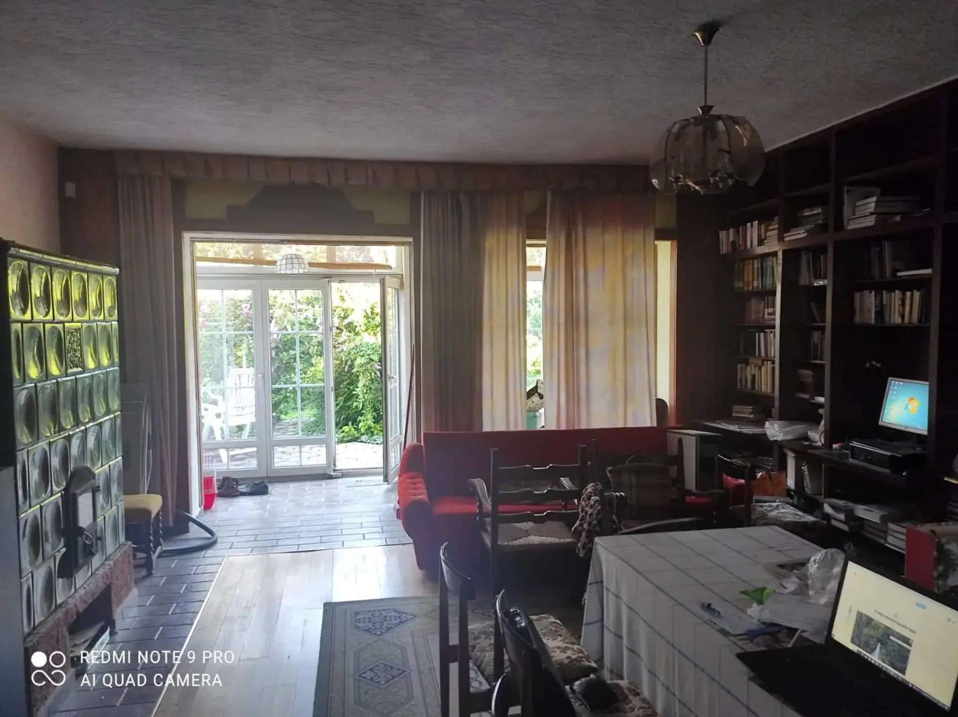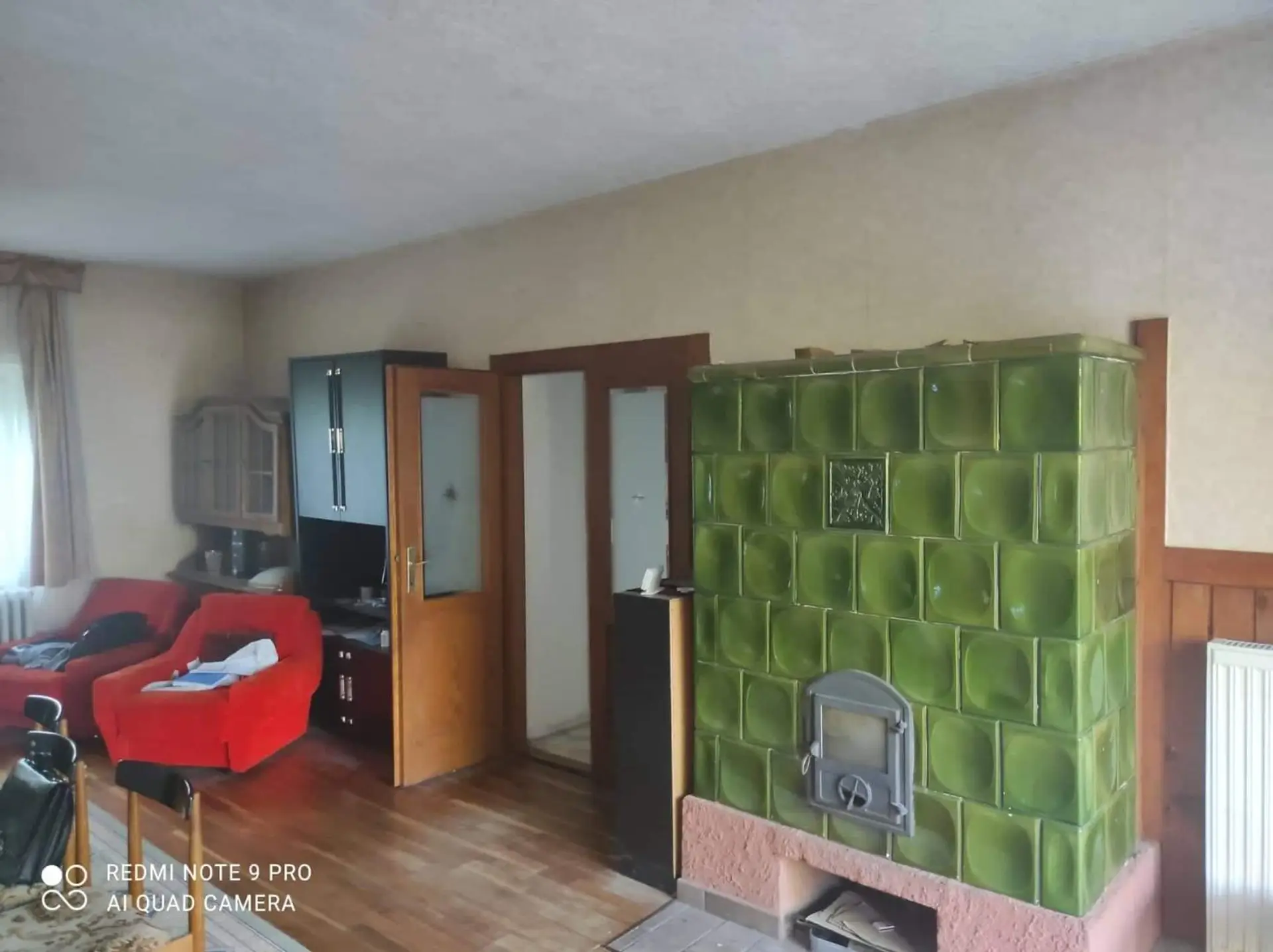 - im Obergeschoss (84 qm) befindet sich ein Zimmer (8 qm) und das Wohnzimmer mit großem Kachelofen mit Terrassenanschluss (46 qm), eine Essküche (10 qm), ein WC.