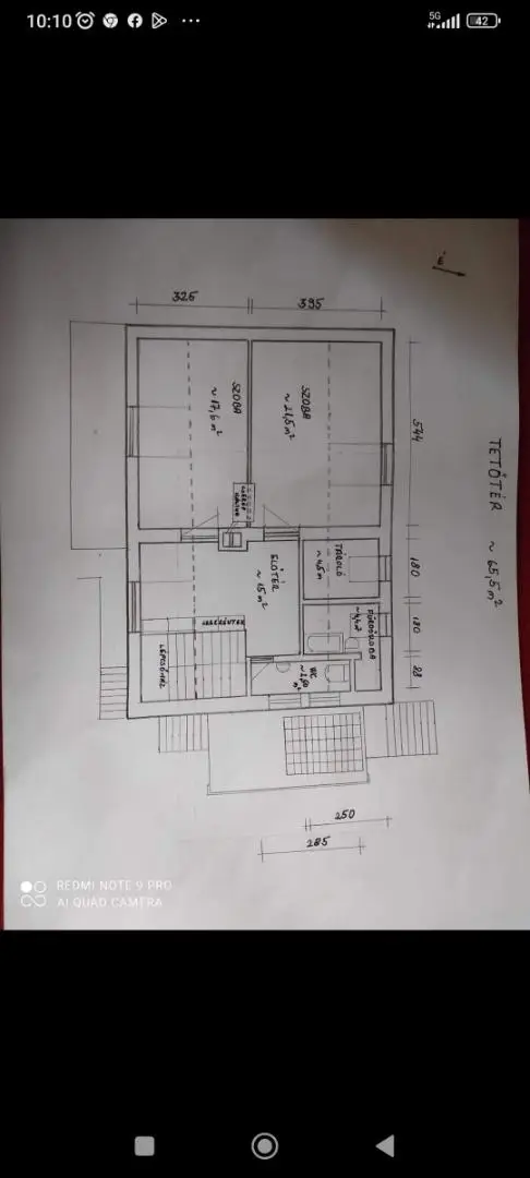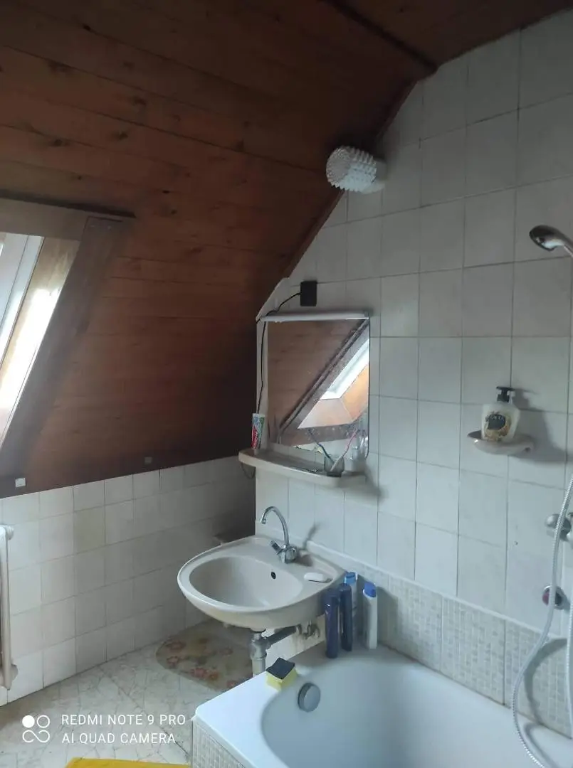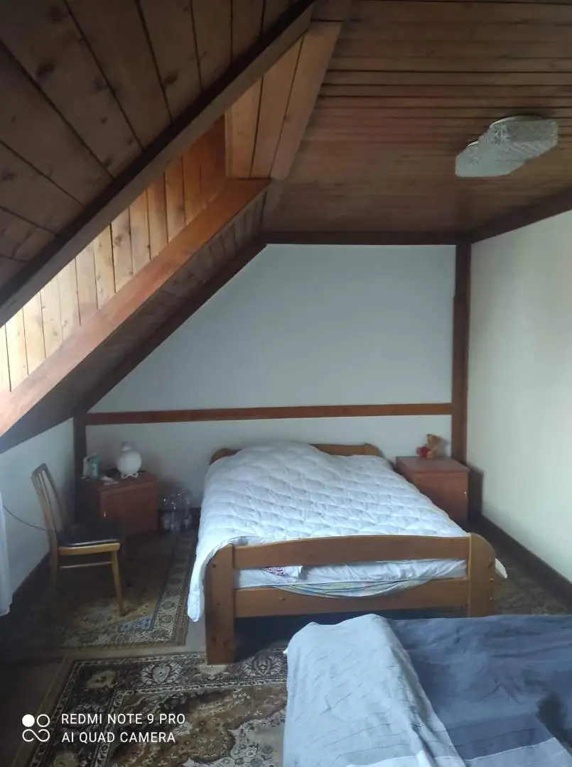 - das Dachgeschoss (65 qm) verfügt über einen großen Flur (15 qm), 2 Schlafzimmer (23 qm und 18 qm), einen gemeinsamen Kachelofen, ein kleines Arbeitszimmer (5 qm), ein Badezimmer mit Badewanne (5 qm), und eine separate Toilette.