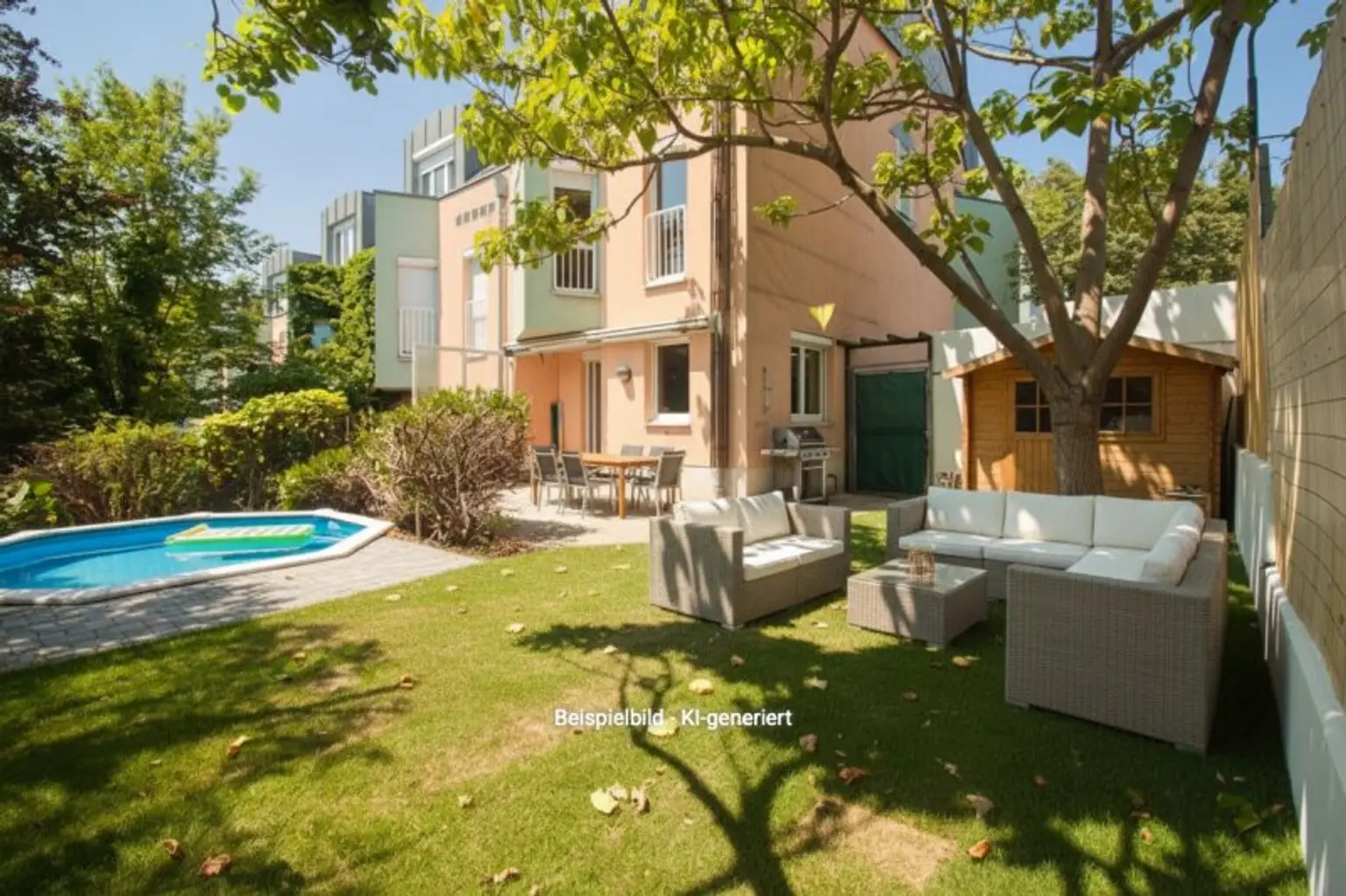 Der Garten des Objekts ist sehr gut geschnitten, privat und bietet auf ca. 105 m² genug Platz um sich und seinen grünen Daumen auszutoben & die herrliche Ruhelage zu genießen. Der Garten hätte - nach Wunsch - auch ausreichend Platz für einen Pool.