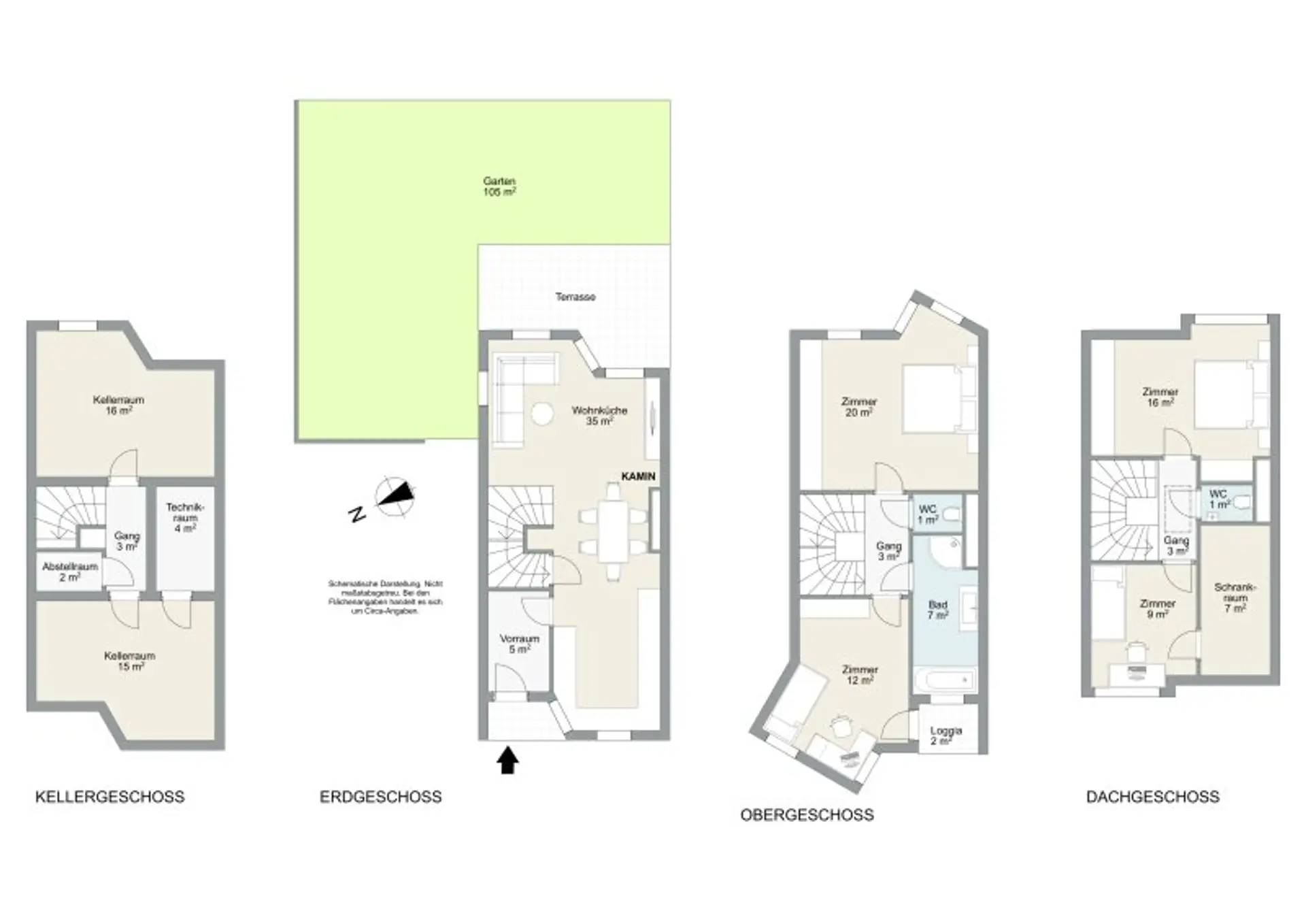 Das Kellergeschoss besteht aus einem größeren Kellerraum mit 16 m² und Fenster, einem kleinen Abstellraum unter der Treppe, einem Technik-/Heizraum und einem weiteren ca. 15 m² großen Raum mit Wasseranschluss für die Waschmaschine und einer Sauna.