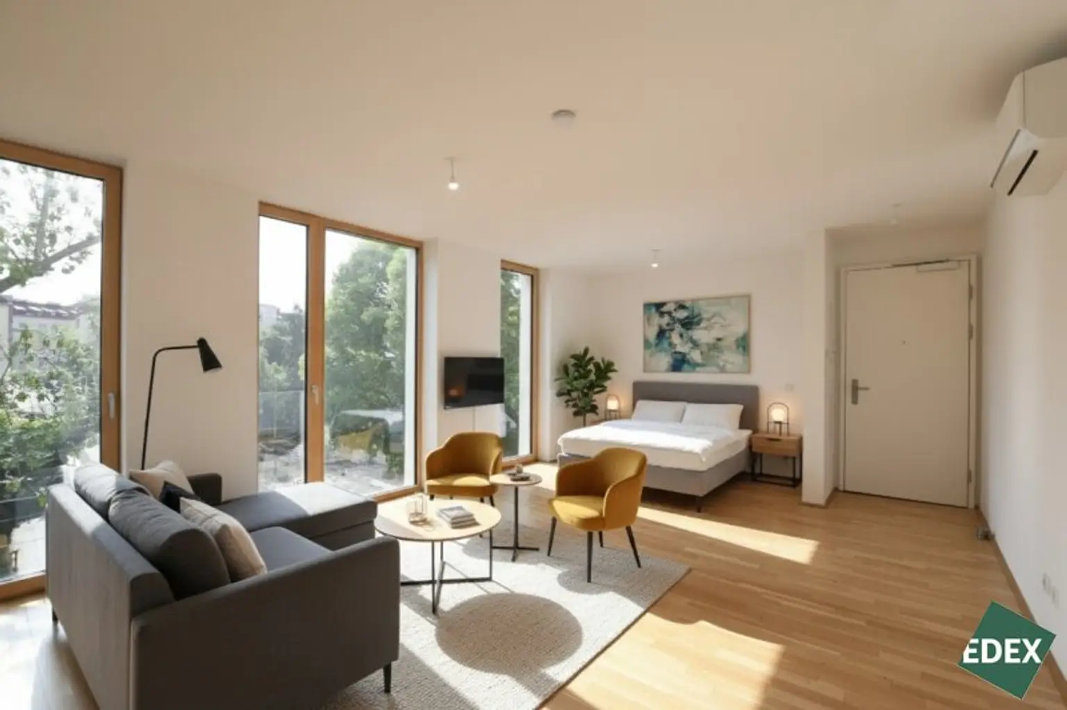 Die in diesem Exposé enthaltenen Bilder dienen der Veranschaulichung und können teilweise computergenerierte Visualisierungen (Renderings) beinhalten. Diese Darstellungen sollen einen Eindruck von der möglichen Gestaltung der Immobilie vermitteln, stellen jedoch keine verbindliche Beschaffenheitsangabe dar. Die abgebildeten Möbel und Einrichtungsgegenstände dienen ausschließlich der Illustration und sind nicht Bestandteil des Kauf- oder Mietgegenstandes.
