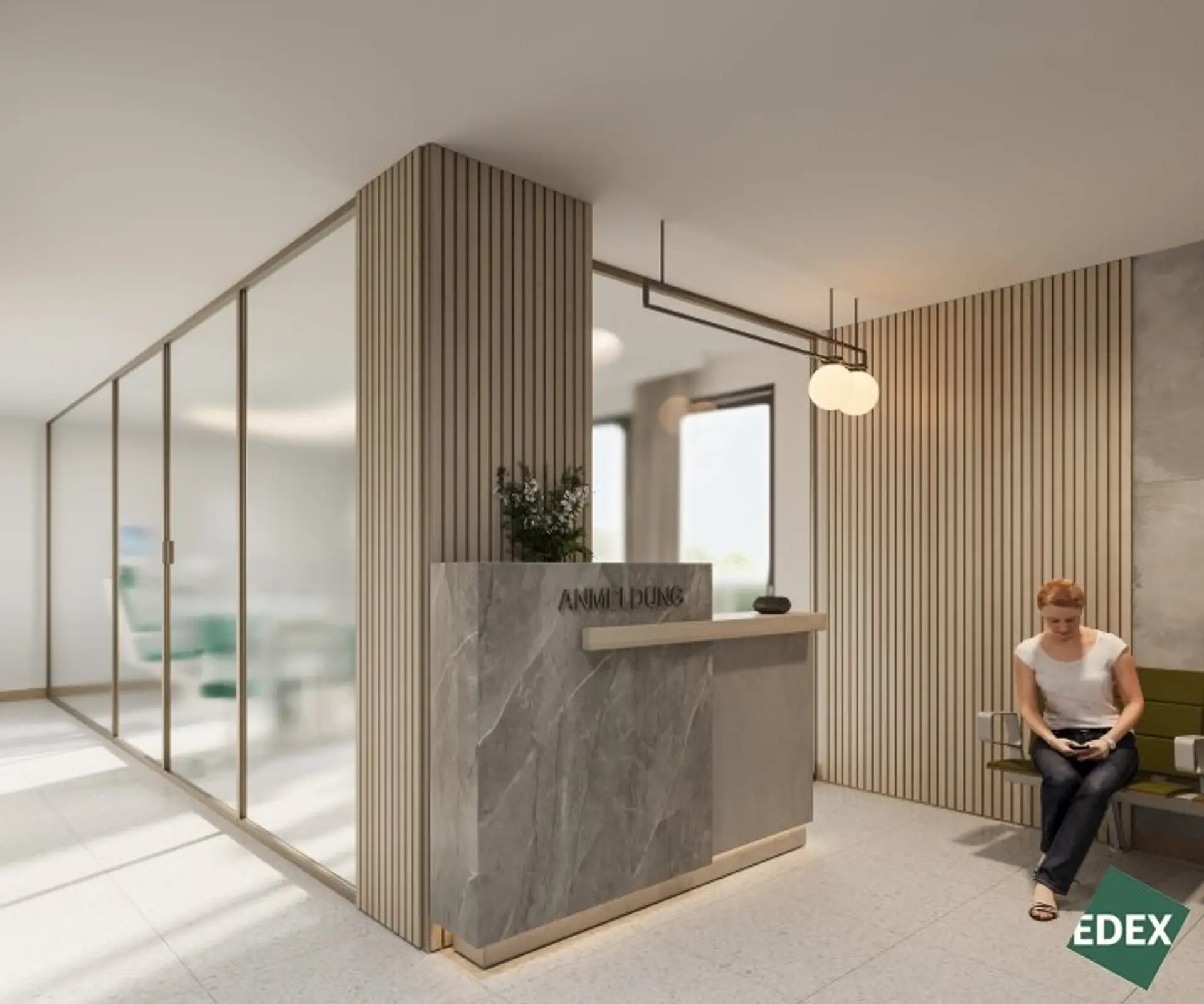 Zum Verkauf gelangt eine moderne Praxis- oder Bürofläche. Das Objekt befindet sich im Erdgeschoss und verfügt über einen Eingangsbereich, eine separate Toilette mit Handwaschbecken, ein Badezimmer mit Toilette, Dusche und Waschmaschinenanschluss, eine moderne, mit AEG-Geräten ausgestattete, Küche sowie über einen vielfältig nutzbaren, geräumigen Raum, welcher optimal als Büro oder Praxis genutzt werden kann. Die traumhafte, ca. 20 m² große, Terrasse ist über den zentralen Raum aus begehbar. Zudem ist dem Objekt ein Kellerabteil zugeordnet, welches für weiteren Stauraum sorgt. Im Haus befinden sich Kinderwagen- und Fahrradabstellräume.