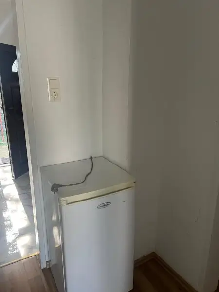 Beim Betreten des Hauses gelangen Sie in ein freundliches Vorzimmer mit einer kompakten Kochnische mit Mini-Kühlschrank und einem kleinem Garderobenbereich. Von hier aus erschließt sich der helle Wohnbereich. Angrenzend befindet sich ein kleines Kabinett. Das Haus verfügt außerdem über ein kleines Badezimmer mit Dusche und WC.
