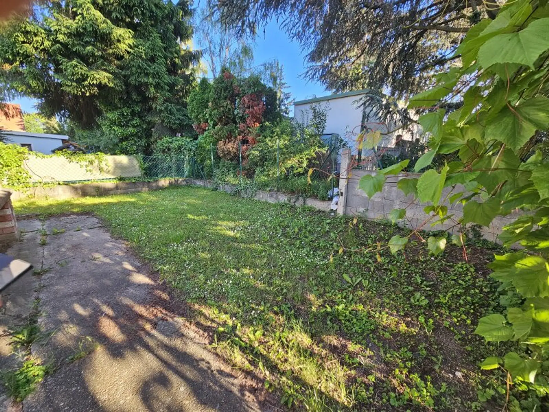 Trotz der guten Infrastruktur genießen Sie im Garten eine ruhige Atmosphäre, die dieses Haus zu einem angenehmen Rückzugsort in der Stadt macht.