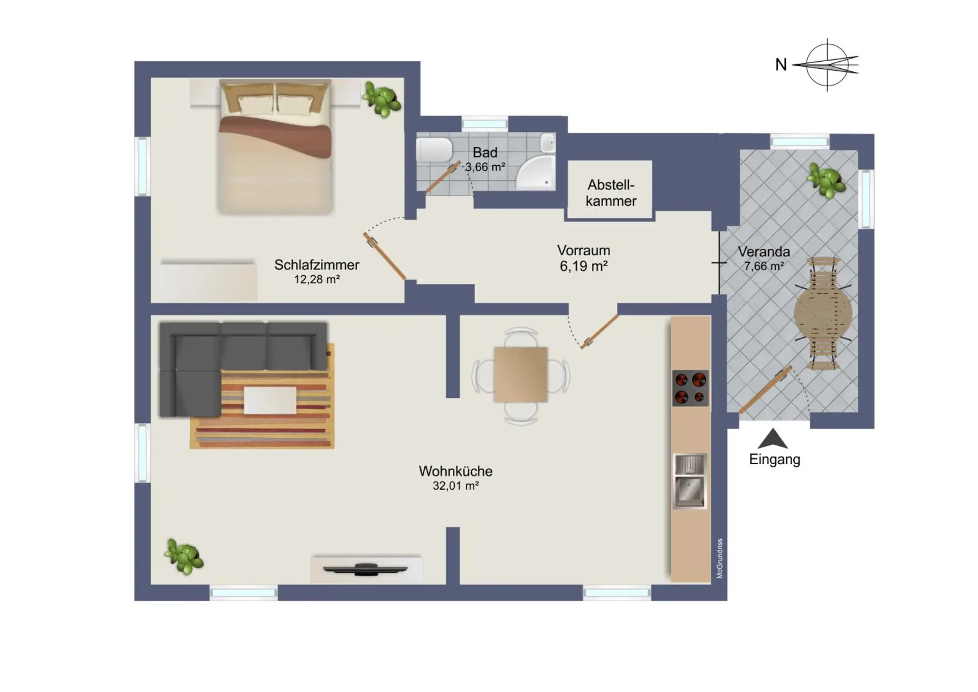 Ein besonderes Highlight ist der zugeordnete Gartenanteil, der zusätzlichen Freiraum im Grünen bietet – ideal zum Entspannen oder für gemütliche Stunden im Freien.